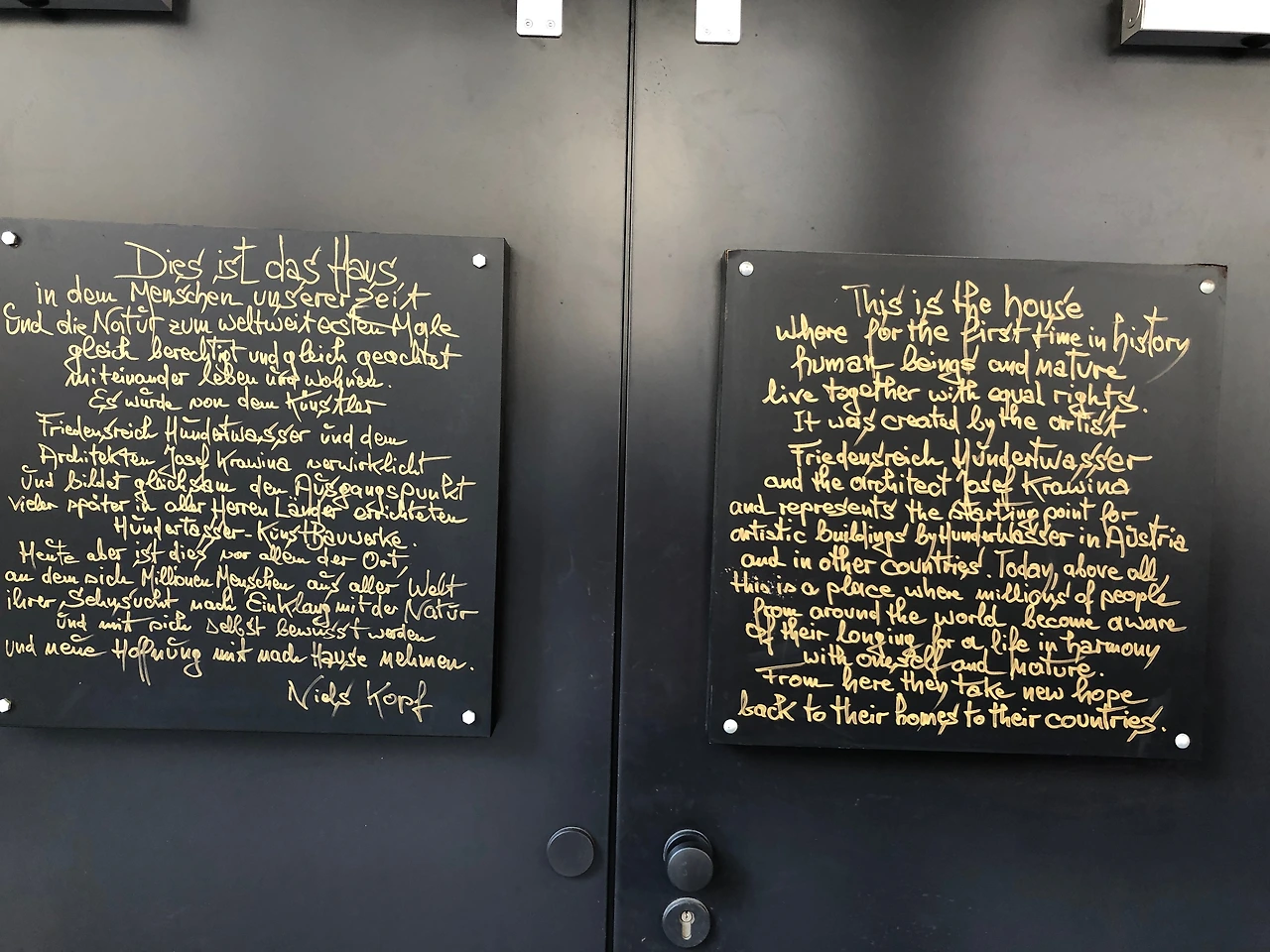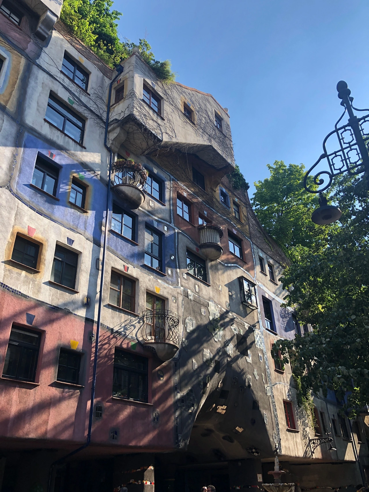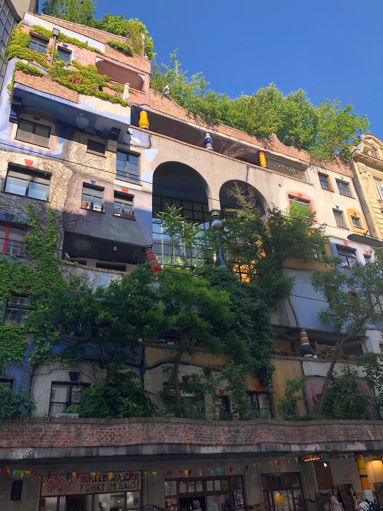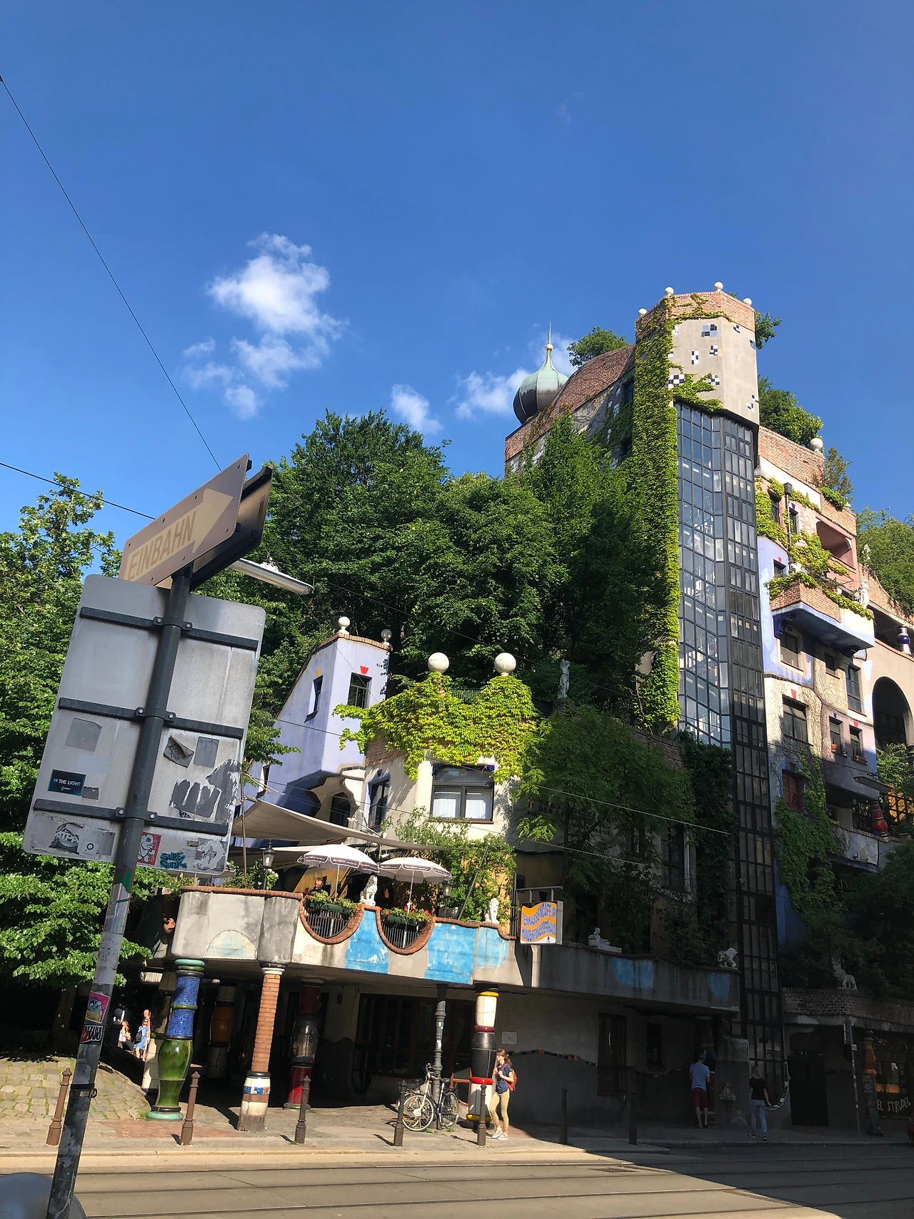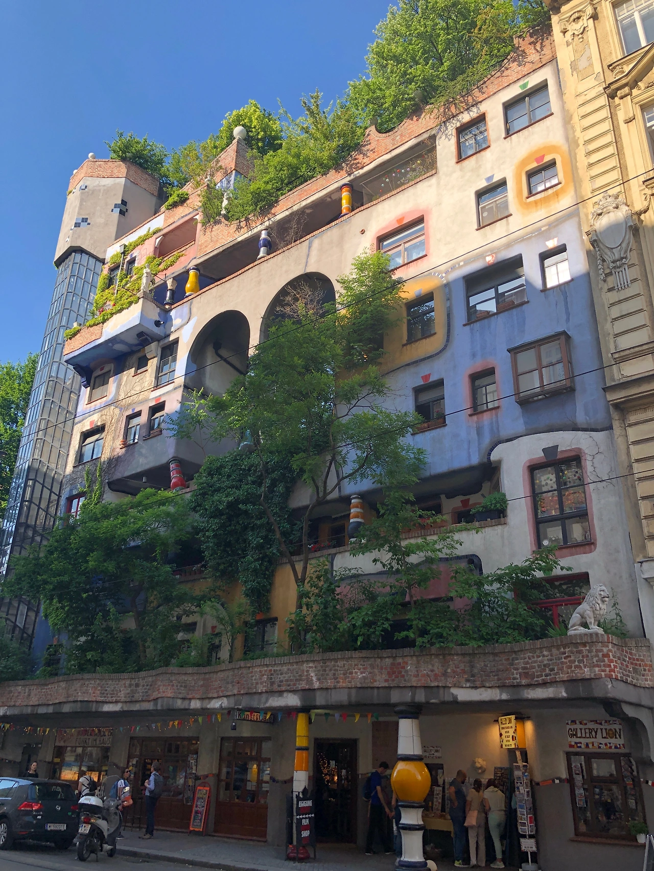 훈데르트 바서 하우스는 비엔나 3구에 위치하고 있고, 시내 중심에서 가까운 편이다. 훈데르트 바서 하우스는 비엔나 시에서 의뢰받아 그가 설계한 공공 아파트다. 기둥은 훈데르트 바서가 특징적으로 사용한 원색의 알록달록한 타일들로 장식돼 있고, 아파트에서 직선은 찾아보기 어렵다. 아파트 자체가 나무와 공존하고 있는데, 사람과 자연이 그대로 어우러져 함께 살고 있는 것 같다.