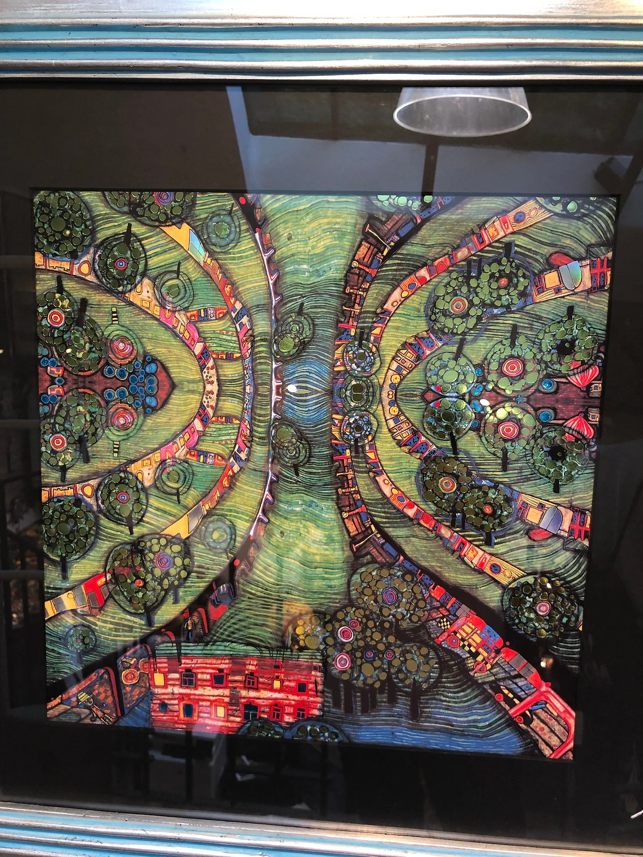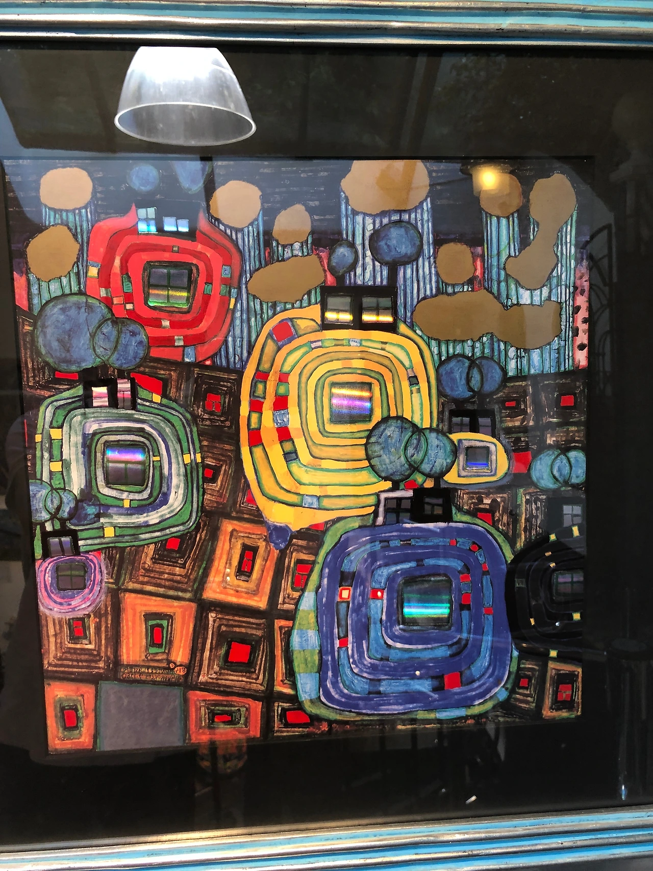 맞은편 기념품 가게는 예전에 타이어 공장으로 쓰였던 곳인데, 훈데르트 바서가 자신의 예술 혼을 담아 개조한 곳이라 그 자체로 바서의 건축물을 내부에서 감상할 수 있는 곳으로서 의미가 있다. 그리고 그 안에서 볼 수 있는 기념품, 특히 2층에 있는 가게에서는 인근 쿤스트 하우스에서 눈으로 본 예술작품들을 다시 한번 감상할 수 있다. 쿤스트하우스에서는 사진 촬영이 금지되어 있기 때문에 나중에 곱씹어 보려면 이 가게 안 그림이나 엽서들이 큰 도움이 된다.
