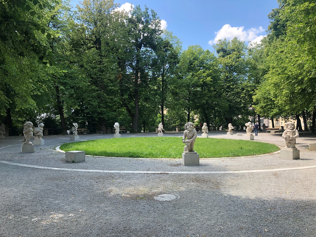사운드 오브 뮤직에 나왔던 난쟁이 동상들이 모인 광장(?)이다. 여기는 쉽게 찾을 수가 없다. 미라벨 궁전 전체로 보면 외딴곳에 있기 때문이다. 페가수스 분수에서 도레미 계단을 보는 방향 기준으로 왼쪽으로 난 길을 따라 조금 걸어 들어가면 볼 수 있다. 난쟁이 인형들도 미라벨 궁전의 특징적인 포인트 중 하나다.