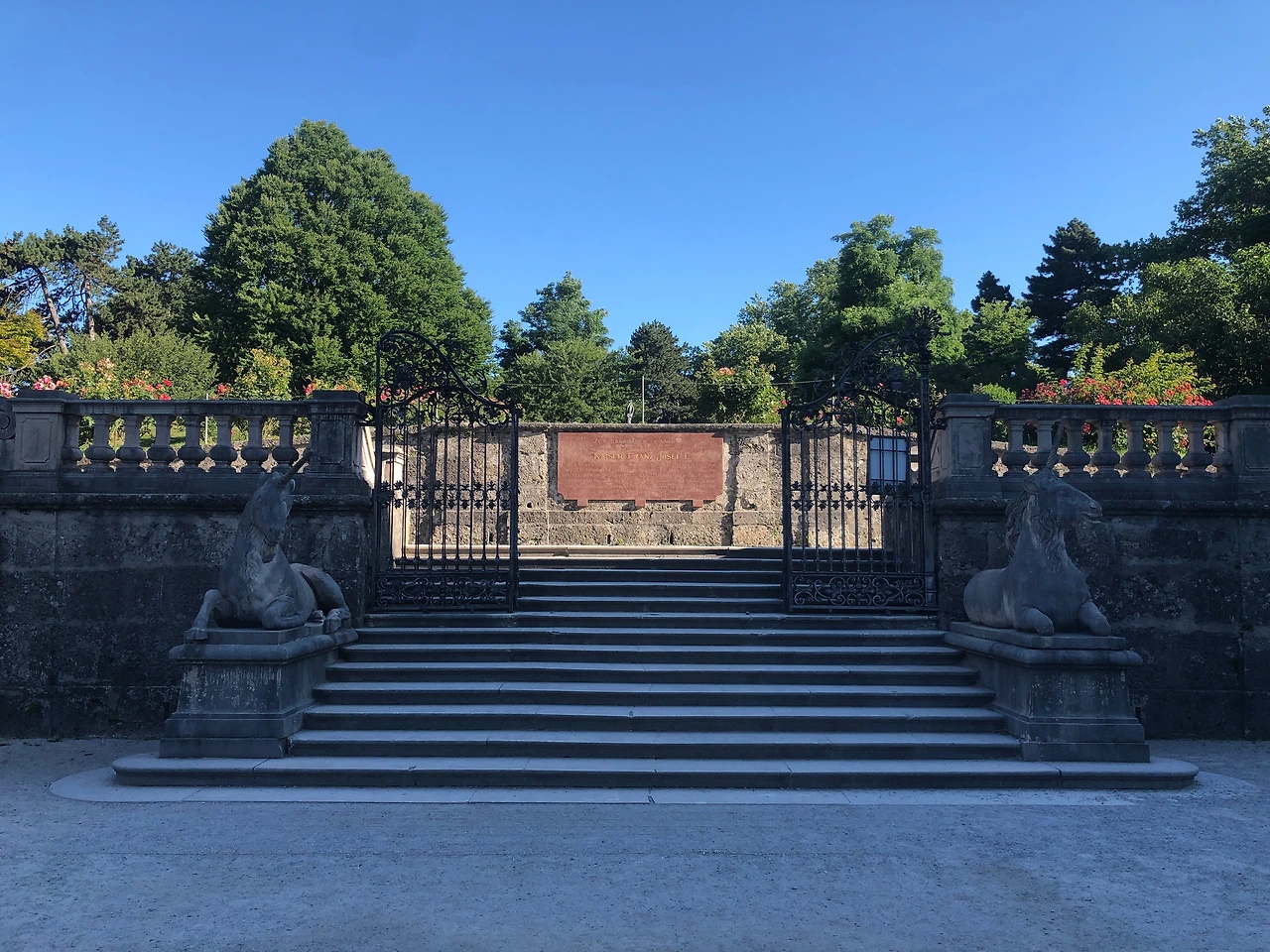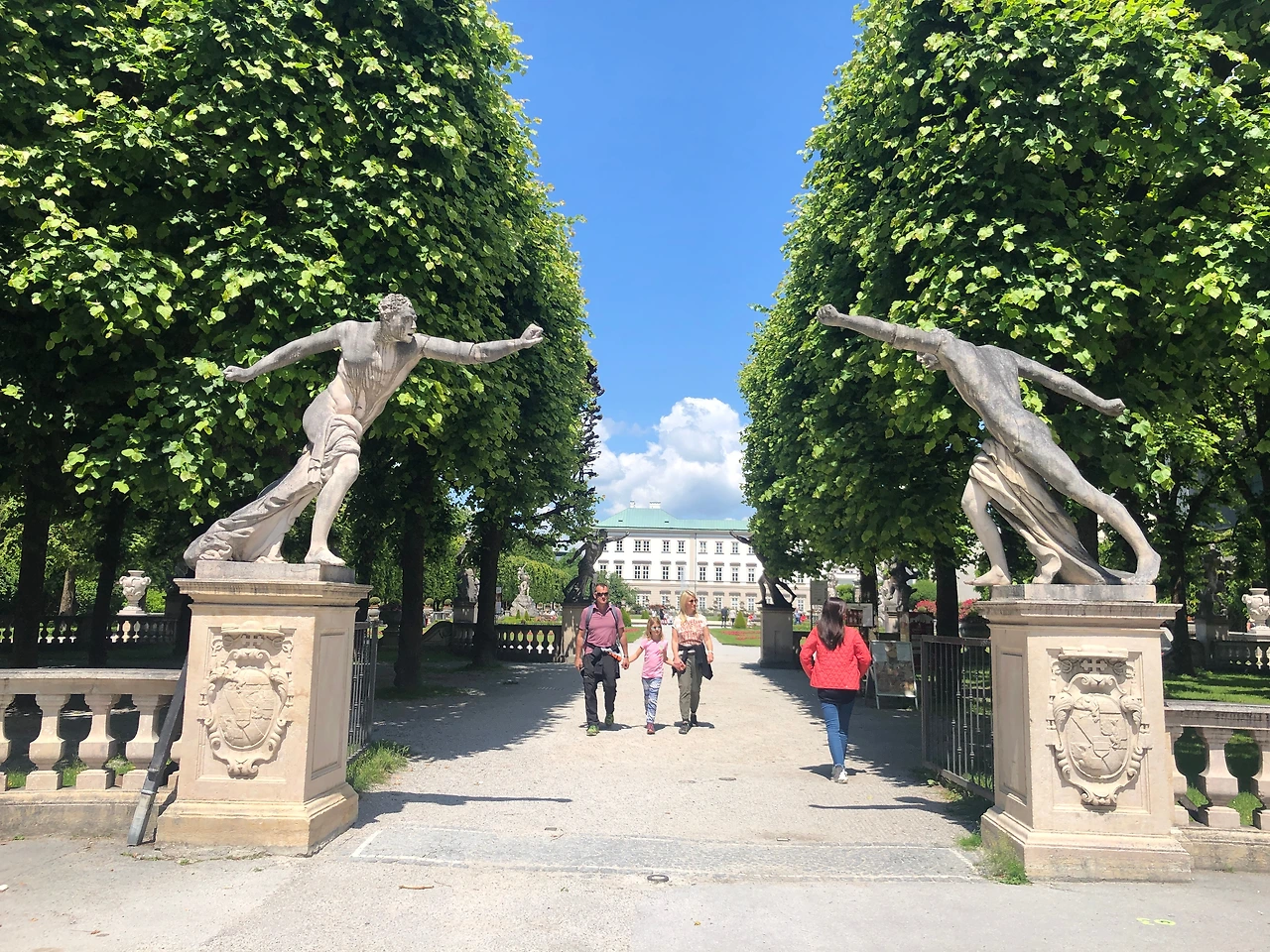 미라벨 궁전의 입구이다. 양 옆에는 무언가를 던지는 모습을 한 두 동상이 인상적이다. 여기도 사운드 오브 뮤직의 한 장면을 장식한 곳이다.