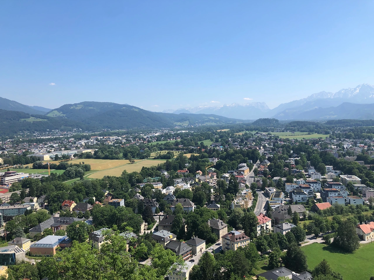 6월인데도 저 멀리 만년설에 덮인 알프스를 보는 재미. 호엔 잘츠부르크에서 가질 수 있는 호사 중 하나다.
