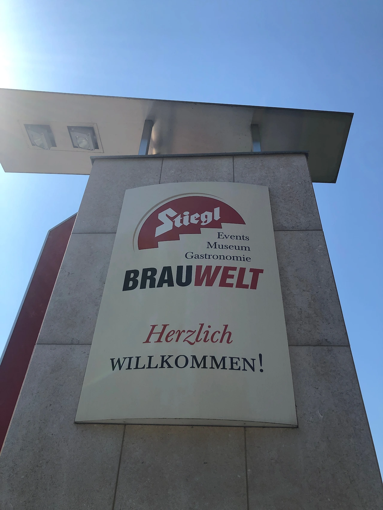 슈티글 맥주 월드(Welt). 간판에 이벤트, 뮤지엄, 식당이 적혀 있어서 무언가 대단한 것이 기다리고 있구나 기대를 하게 만든다. 과거 맥주공장 기억의 연장이라 기대했기에.