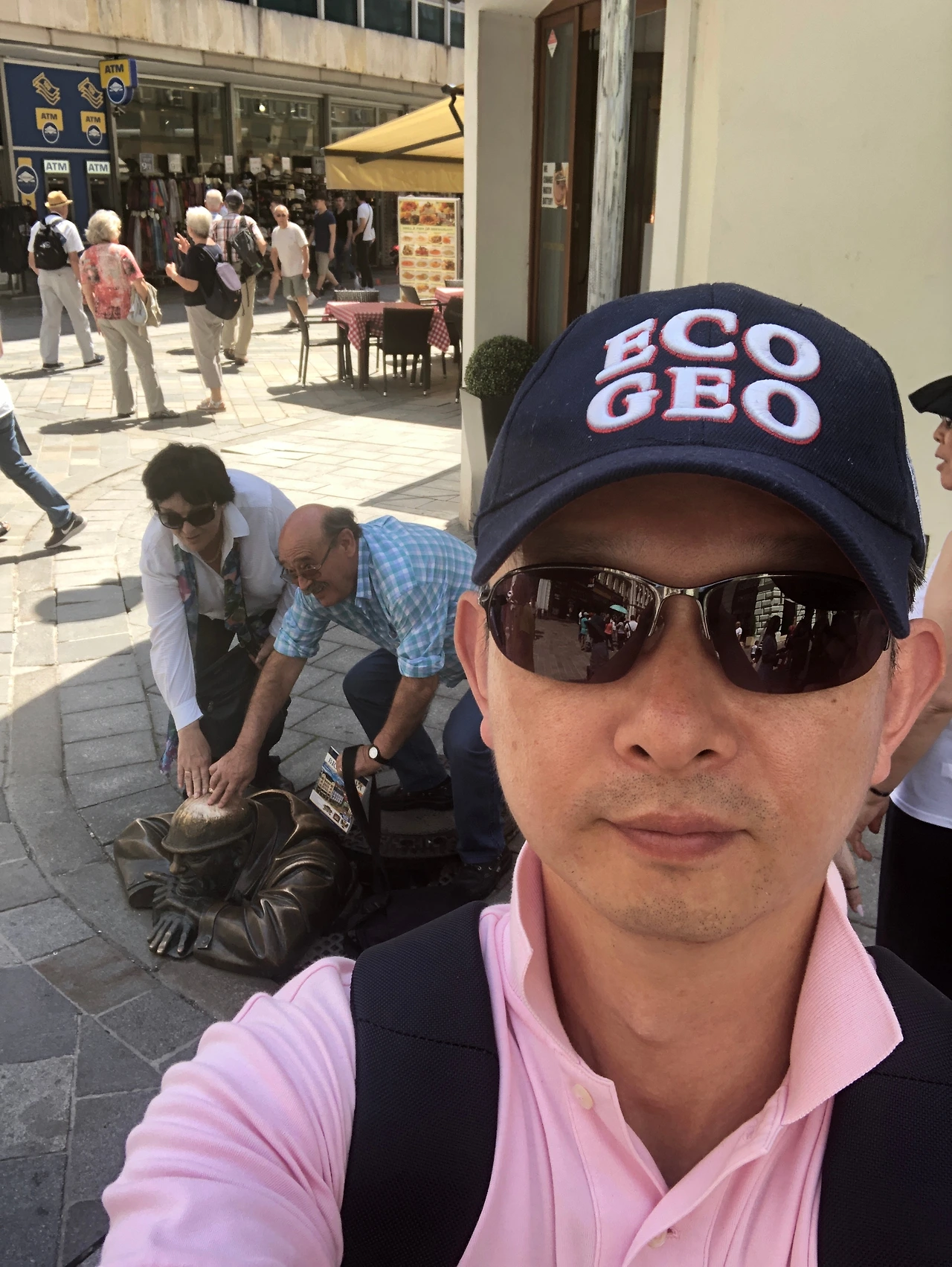 동상이 유명해서 인지 공사 중인 건물 아래 금색 동상이 하나 더 있는 것을 발견했다. 그런데 이내 조금씩 움직이는 것이 아닌가. 자세히 보니 거리 공연을 하는 사람이었다. 마치 동상 같았다. 동상찾기 놀이에 빠져있던 난 기념으로 한 컷 남긴다.
