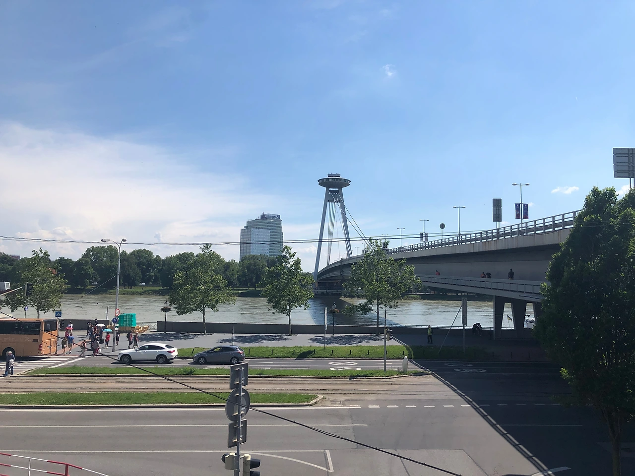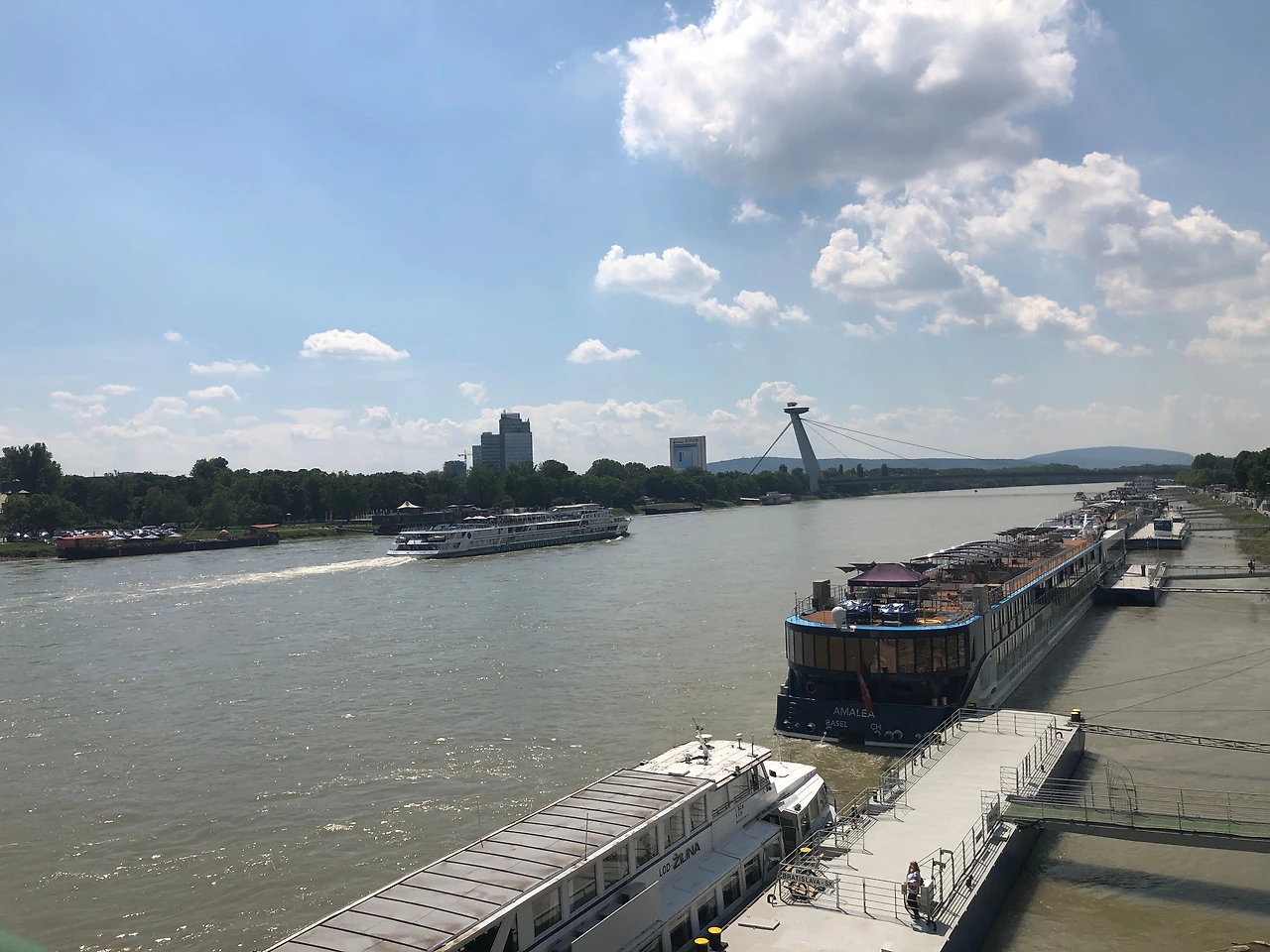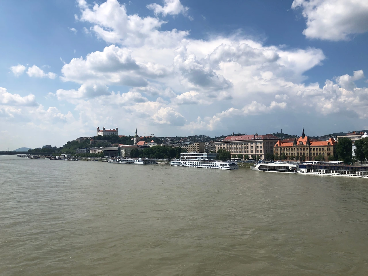 마치 누가 많이 걷는지 대결하는 걷기 대회에 참여한 것처럼 이제 도나우강 강을 건넌다. 여기까지는 비엔나 슈베덴플라츠역에 가면 브라티슬라바라는 큰 글씨를 운하 위에 볼 수 있는데, 거기서 유람선을 타면 여기까지 지 강을 따라 여행할 수 있다.
