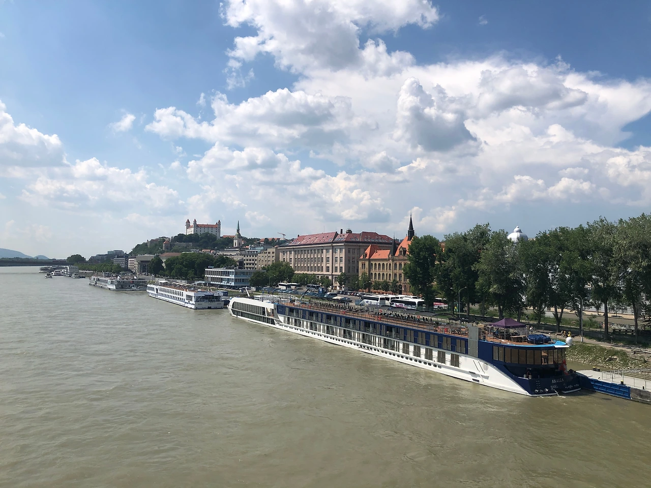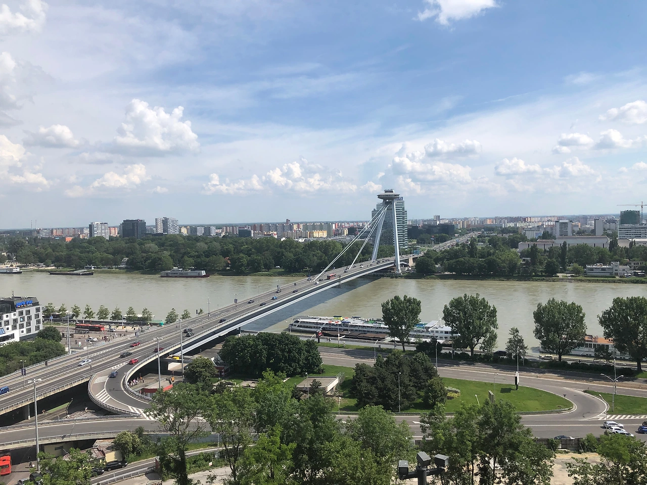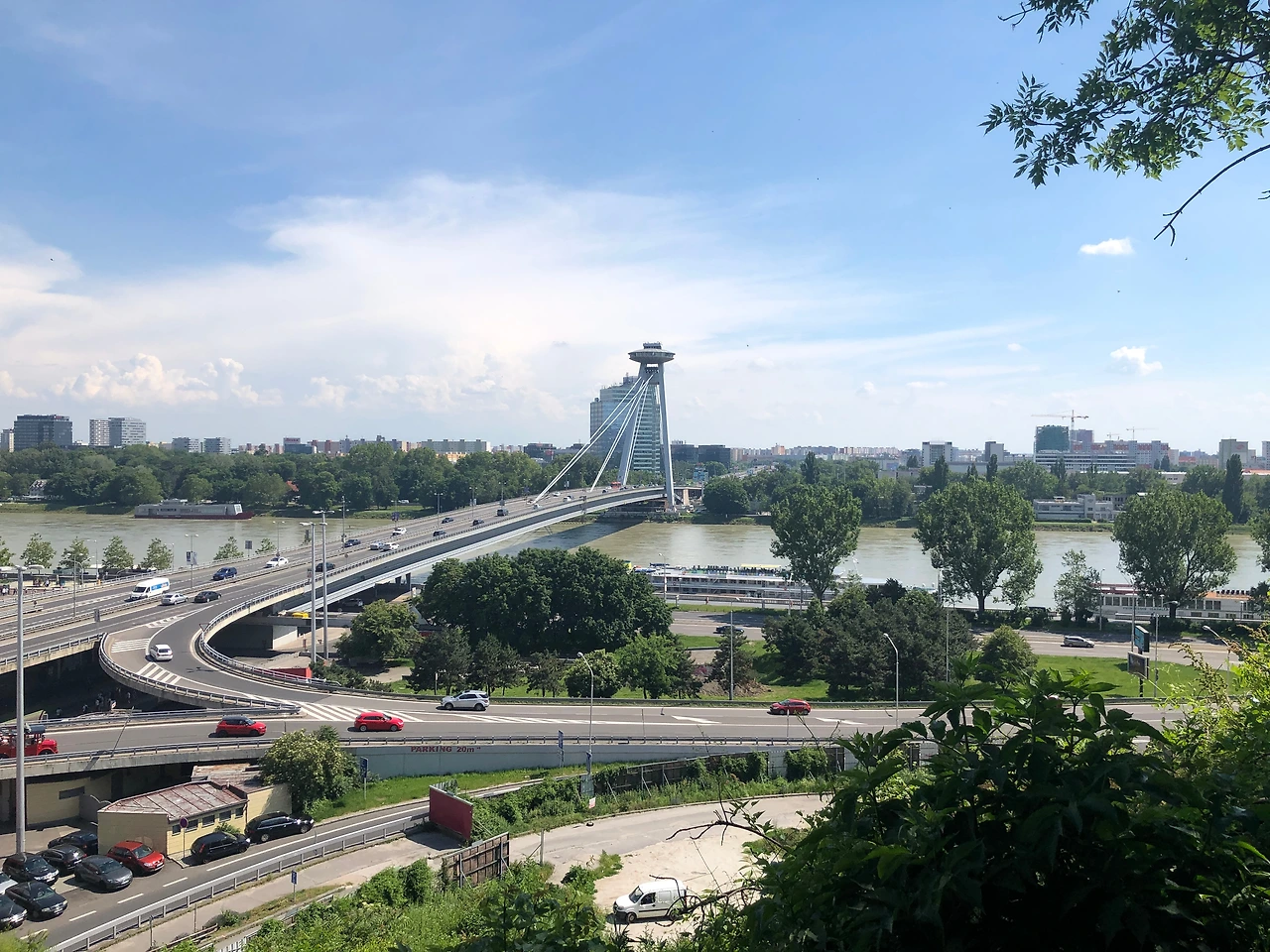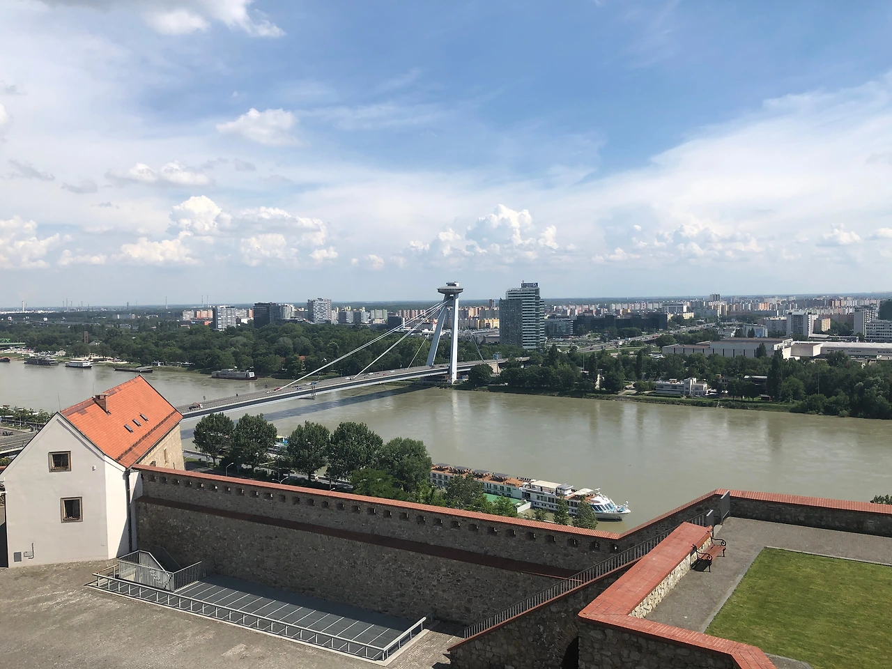 마치 누가 많이 걷는지 대결하는 걷기 대회에 참여한 것처럼 이제 도나우강 강을 건넌다. 여기까지는 비엔나 슈베덴플라츠역에 가면 브라티슬라바라는 큰 글씨를 운하 위에 볼 수 있는데, 거기서 유람선을 타면 여기까지 지 강을 따라 여행할 수 있다.