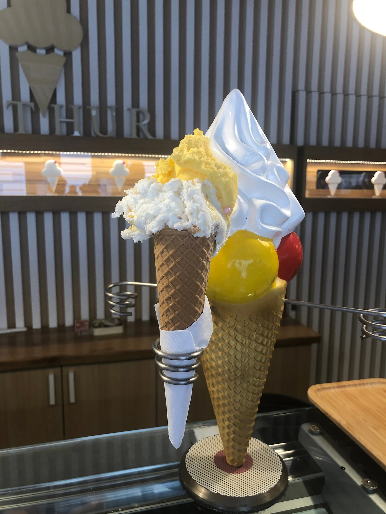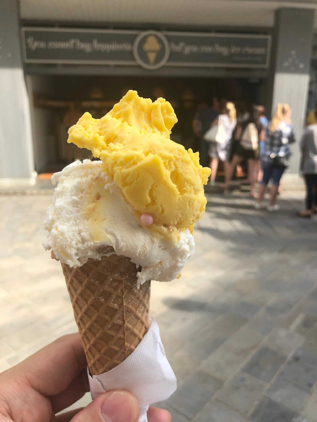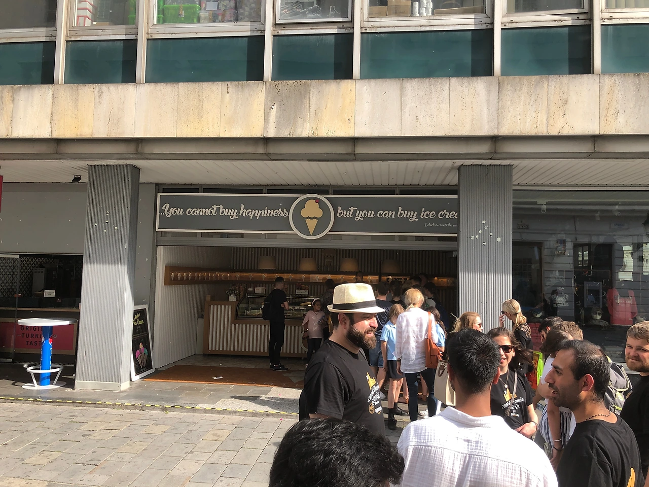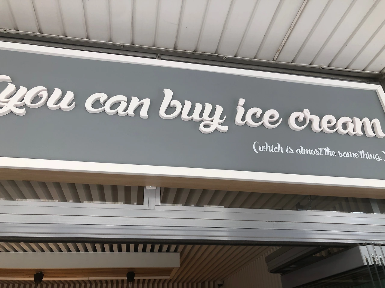 더운 날씨에 목을 축이자기 보다는 추밀 옆 아이스크림 가게의 이름이 눈에 띄어서 아이스크림 가게에 줄을 선다. 가게 이름은 '행복은 살 수 없지만 아이스크림 살 수 있다. You cannot buy happiness, but you can buy ice cream.' 인상적인 문구다. 그래서 맛을 보기로 결심하고는 망고 샤베트를 하나 집어 든다.
