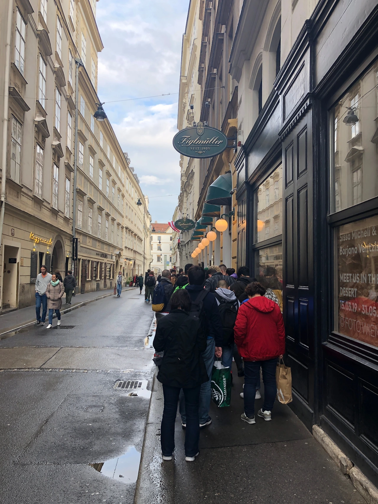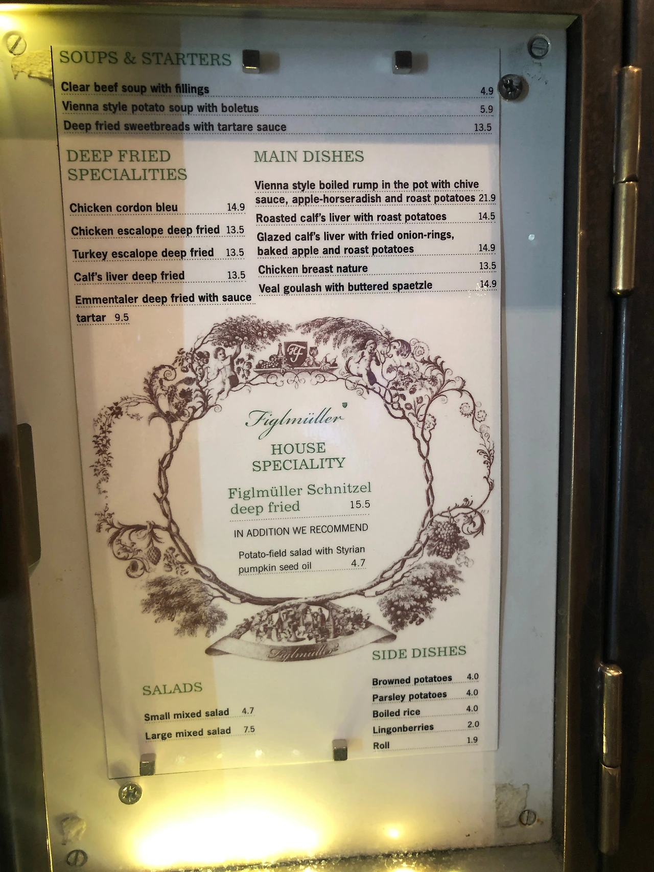 슈니첼을 어떻게 주문해서 먹어야 하는지도 사전 정보도 없이 식당을 갔다. 워낙 관광객들이 많이 오는 곳이라 그런지 줄이 어마어마했다. 돌아가서 다음에 올까 고민도 했지만, 그냥 토요일 오후라 오기로 기다렸다. 결국 한 시간여 지나서야 식사를 할 수 있었다. 슈테판 성당에서 5분 정도 거리에 있다.