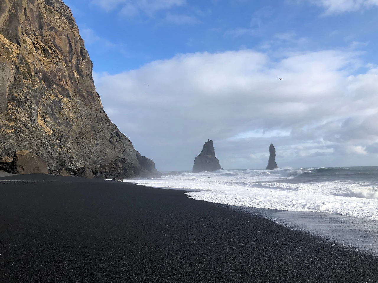 점심으로 햄버거를 먹고 배를 든든하게 채운 후, 디르홀레이로 향했다. 디르홀레이는 등대와 코끼리 바위, 그리고 검은 모래 해변의 전경을 볼 수 있는 작은 반도 지역이다. 레이니스 피아라(Reynifjara)와 이웃해 있는 남부 아이슬란드 관광 명소이다. 디르홀레이는 등대를 기준으로 한쪽은 검은 모래 해변(Endless black beach)을 볼 수 있고, 반대 편에는 코끼리 바위를 볼 수 있다. 프랑스 노르망디 해안의 에트르타 절벽에서 본 코끼리 바위, 몰타 고조 섬 명물이었으나 무너져서 이제는 볼 수 없다는 아주리 윈도우(Azure Window)를 연상시킨다.