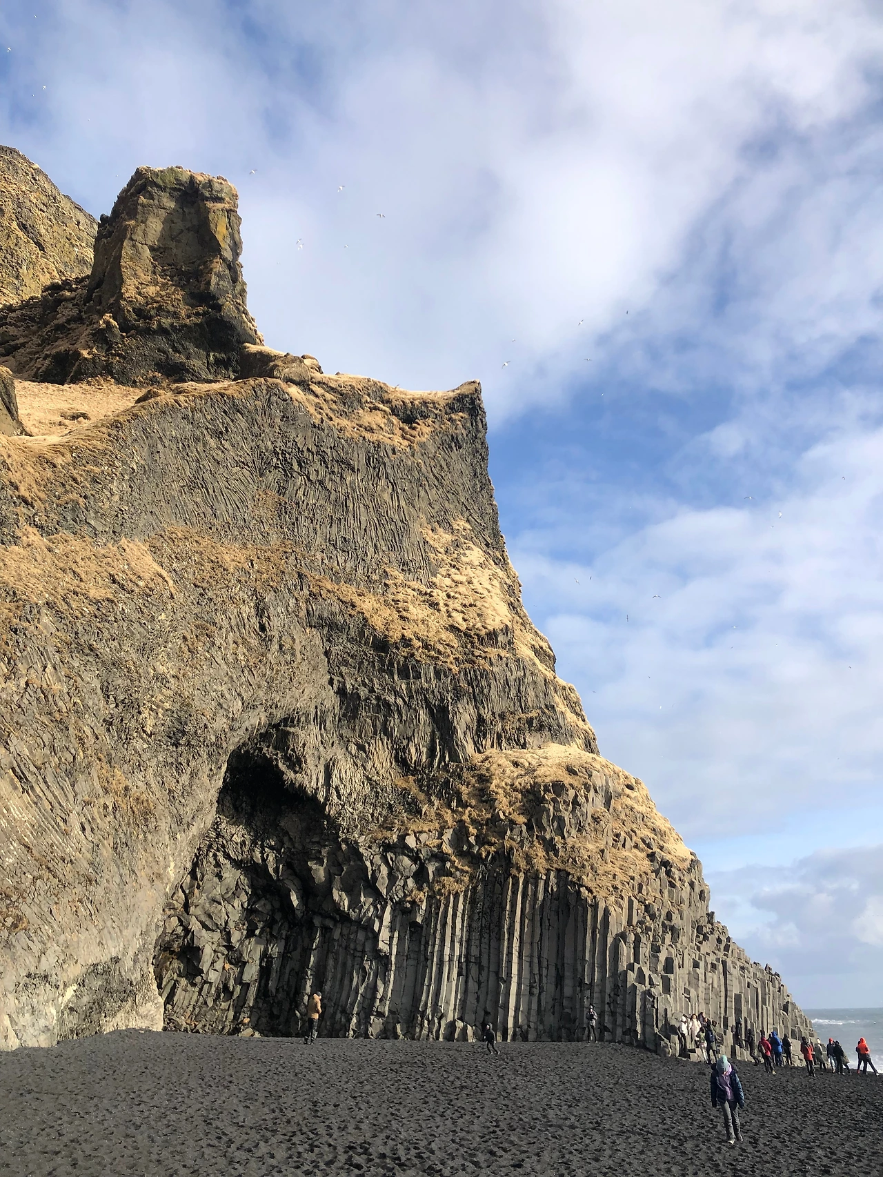 그 주상절리를 살짝 돌아들어가면 동굴이 있다. 영어로 쓴 이름조차도 읽기 힘들 정도로 길고 낯선 이름을 가진 동굴이다. 잠시 매서운 바람을 피해 포근함을 느끼기 좋은 곳인데, 그 안에서 주상절리의 단면을 볼 수 있다.