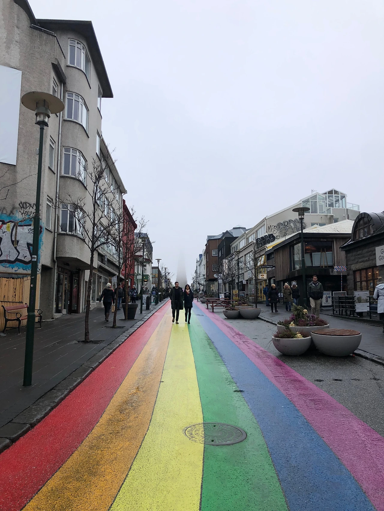 레이캬비크의 중심 쇼핑거리에는 무지개 거리(Rainbow street)가 있다. 무지개 거리와 할그림스 키르캬를 함께 담은 사진 찍기가 나름의 어트랙션이다.