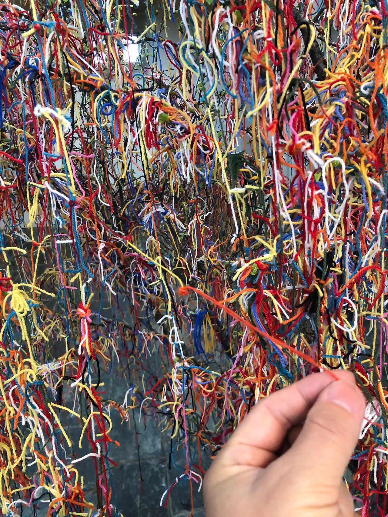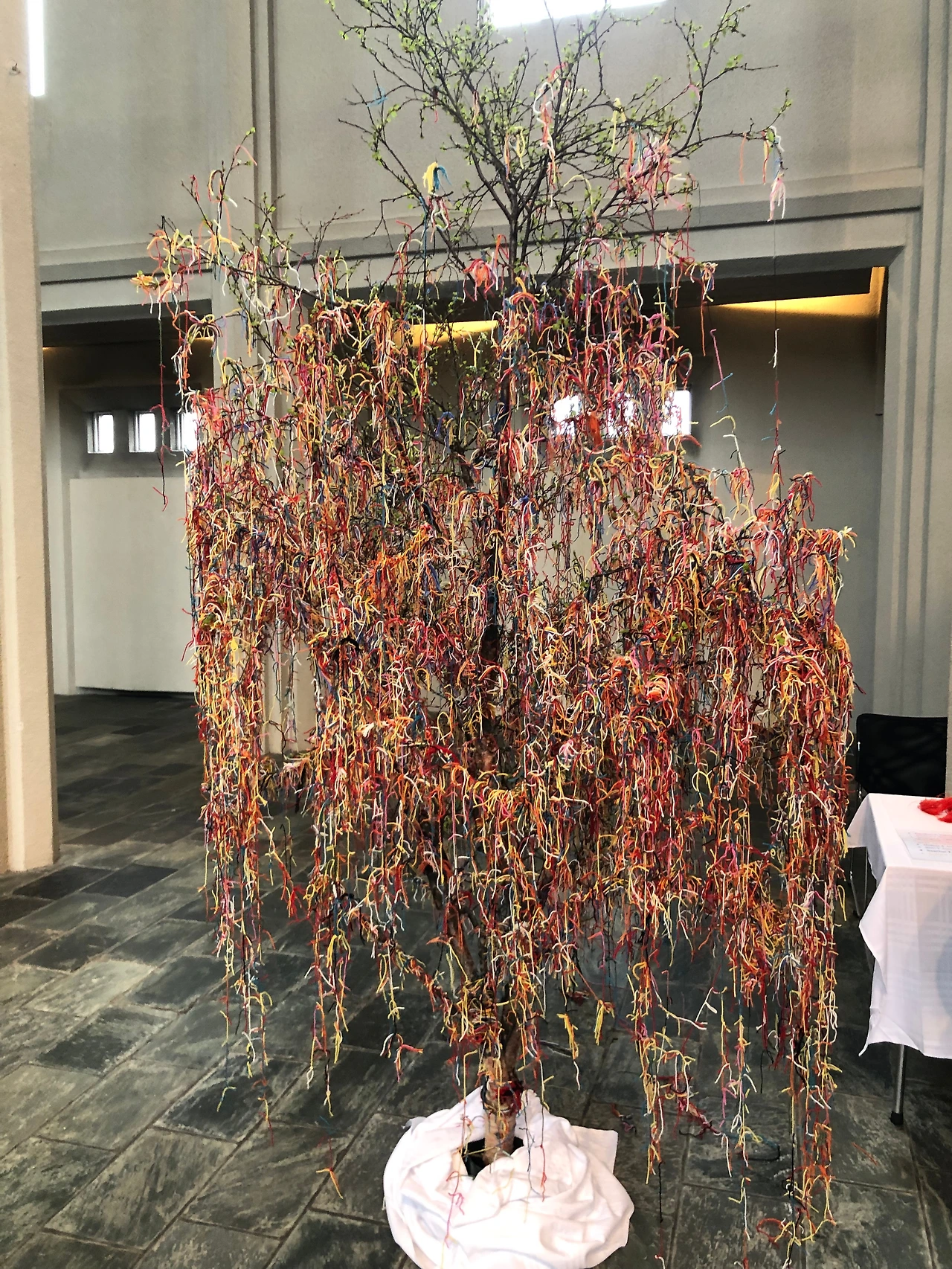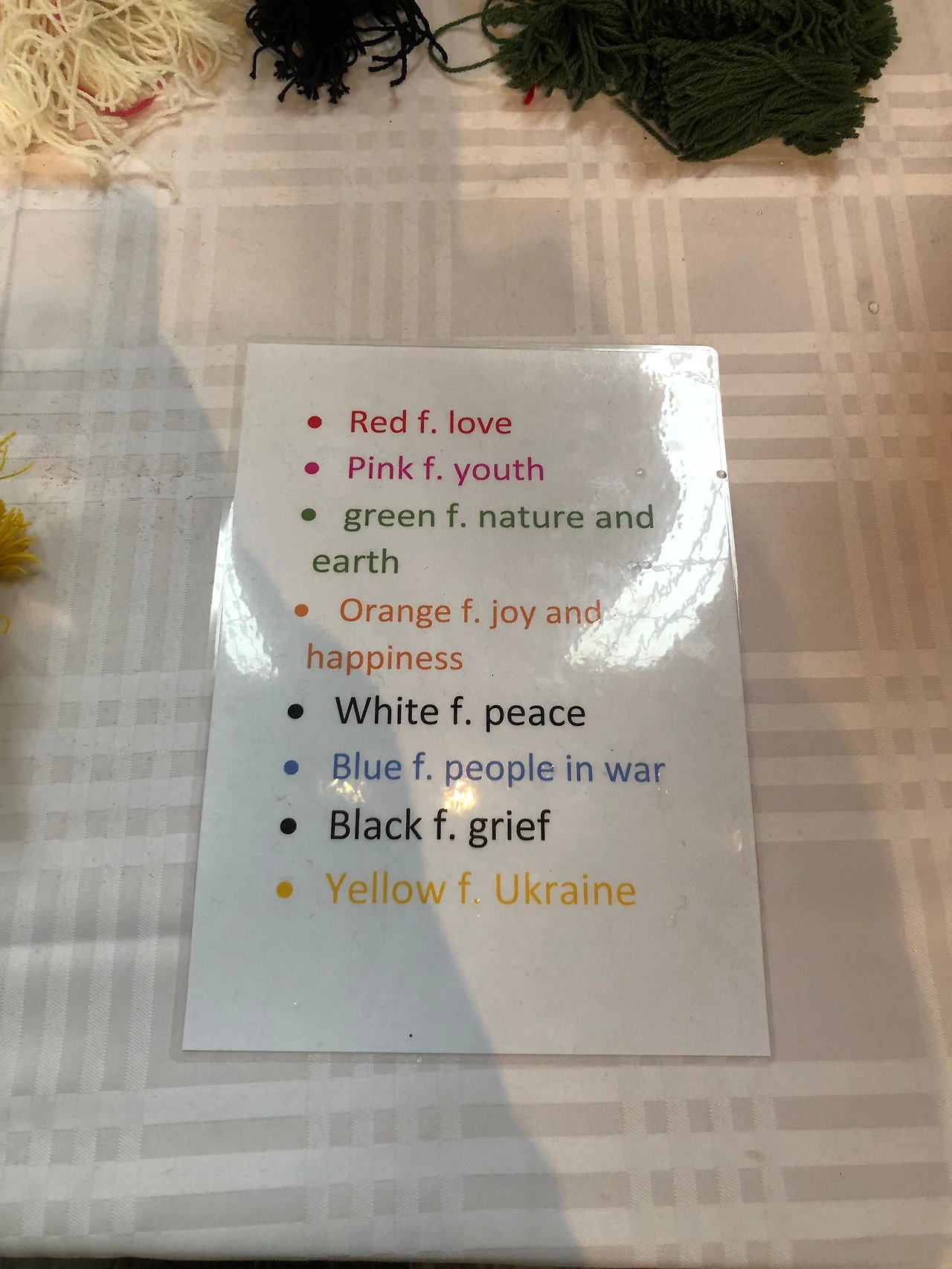 교회 한 켠에는 형형색색의 실들이 묶여서 수양버들 나무 잎사귀처럼 늘어져 있는 장식품이 있었다. 자세히 보니 실을 묶도록 해 놨는데, 각각의 실마다 의미가 다 다르다. 그중에서 나는 빨간색(love), 주황색(joy and hapiness), 그리고 우크라이나를 위한 노란색(Ukraine)을 묶으면서 잠깐 기도했다.