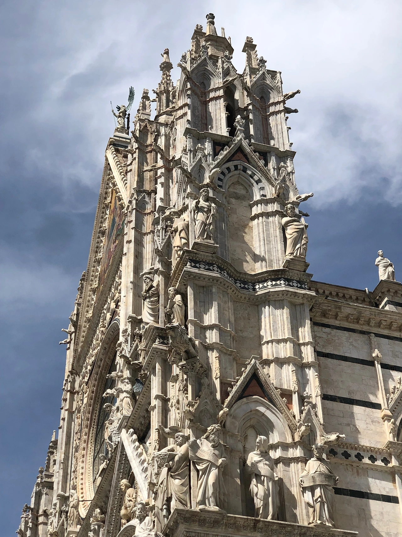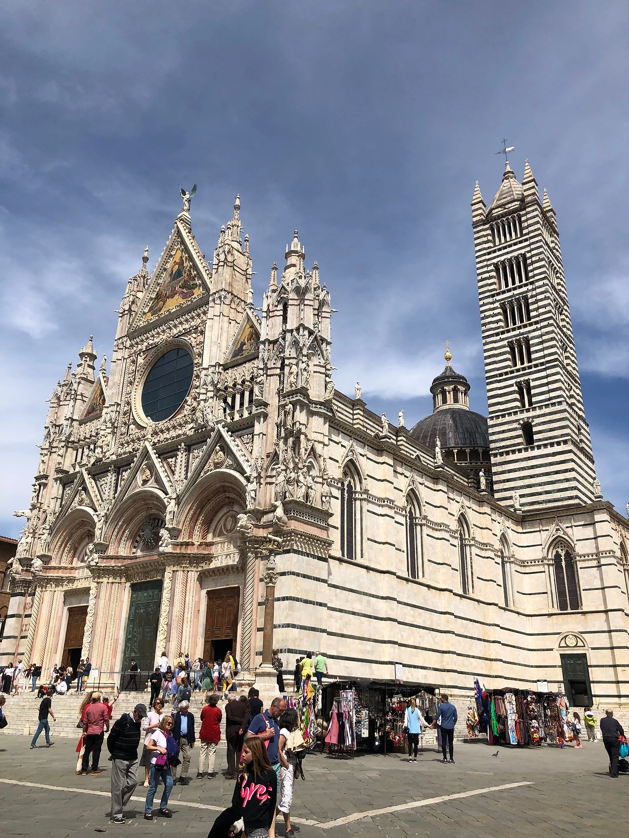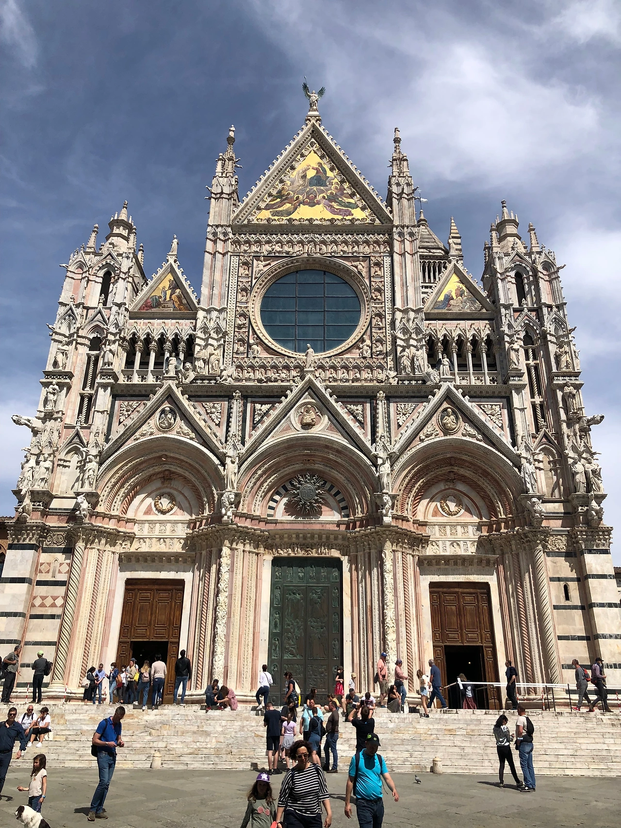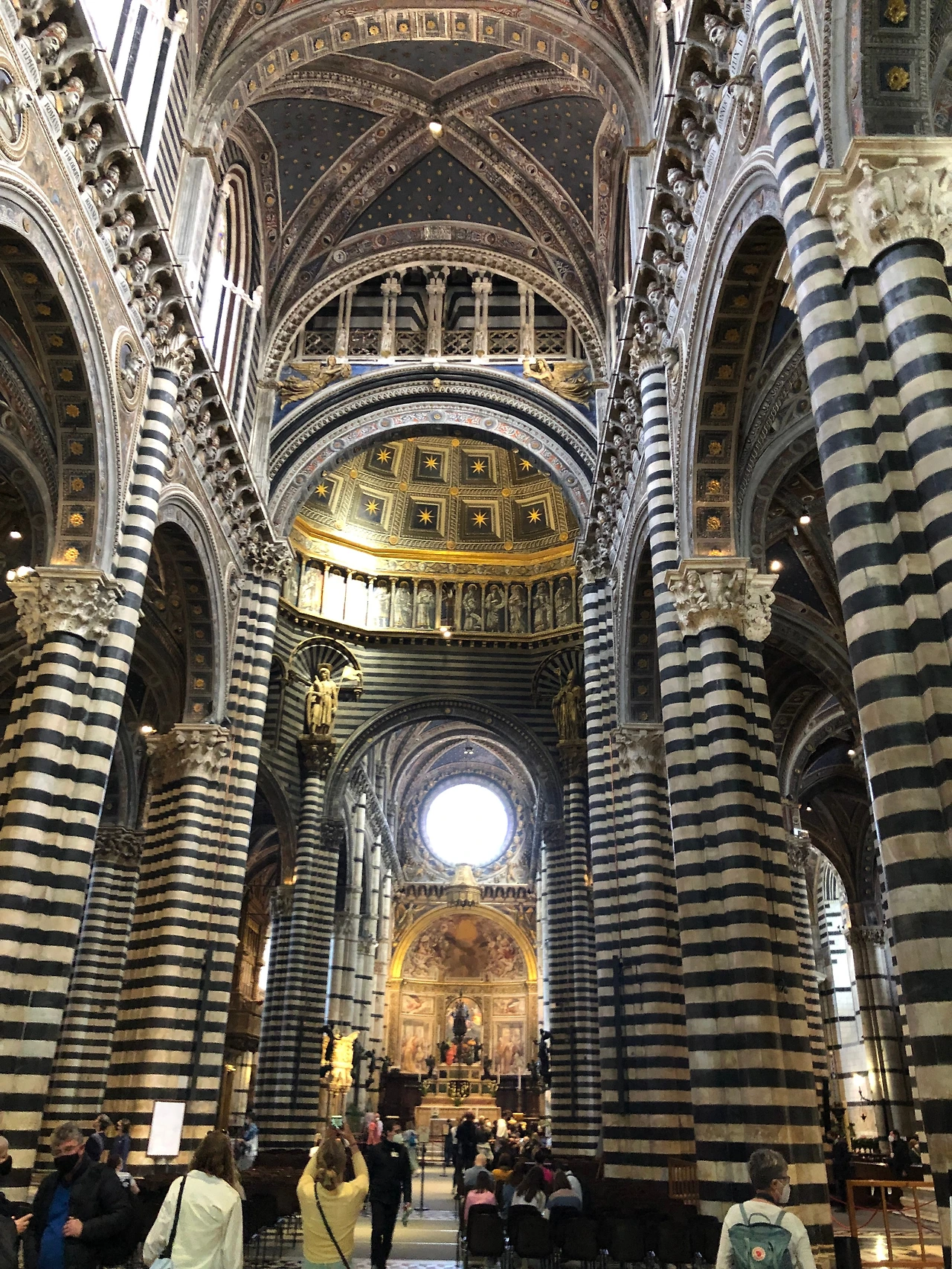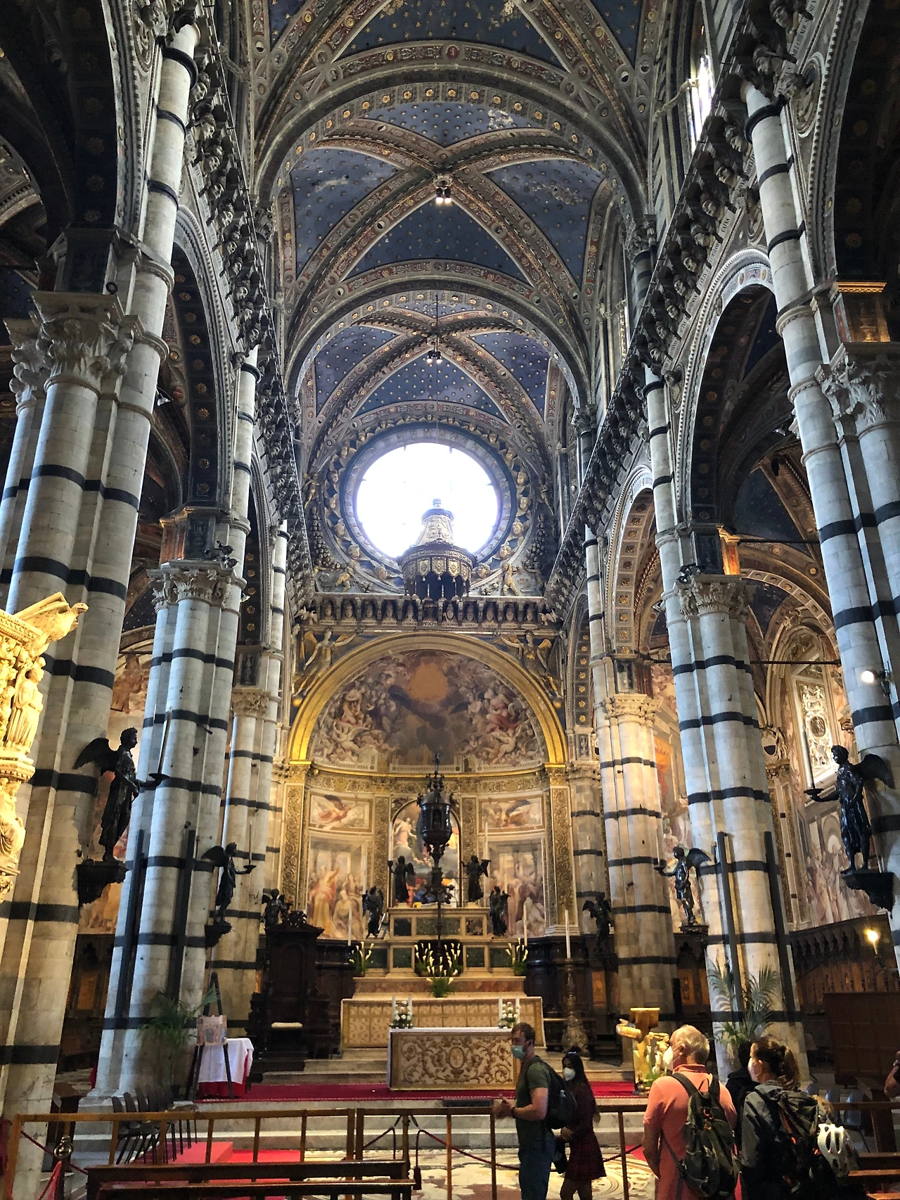 찬찬히 걷다 보면 어느새 시에나 두오모에 도착한다. 매끈한 흰색과 까만색 벽돌의 조화로운 색감. 왠지 익숙하다. 그렇다. 브루넬레스키가 로마의 판테온 등을 연구한 후 설계한 돔으로 유명한, 피렌체의 두오모, '꽃의 성모 마리아'라는 의미의 산타 마리아 델 피오레 대성당과 같은 양식 유사해 보인다. 흰색과 검은색 띠가 그렇다. 그것은 충분히 짐작된다. 지리적으로도 아주 가까워서 서로 영향을 주고 받았음직 하기 때문이다. 입장료를 받지만 그래도 언제 다시 오겠다 싶은 마음에 그냥 지나치고 싶지는 않았다. 돔까지 올라가는 옵션도 있었으나 성당 내부만 구경하는 티켓을 끊어 들어간다. '유럽에서 지내면서 너무도 익숙한 성당 구경'이라 이제는 성당은 굳이 보러 들어가지도 않던 나였지만 말이다.