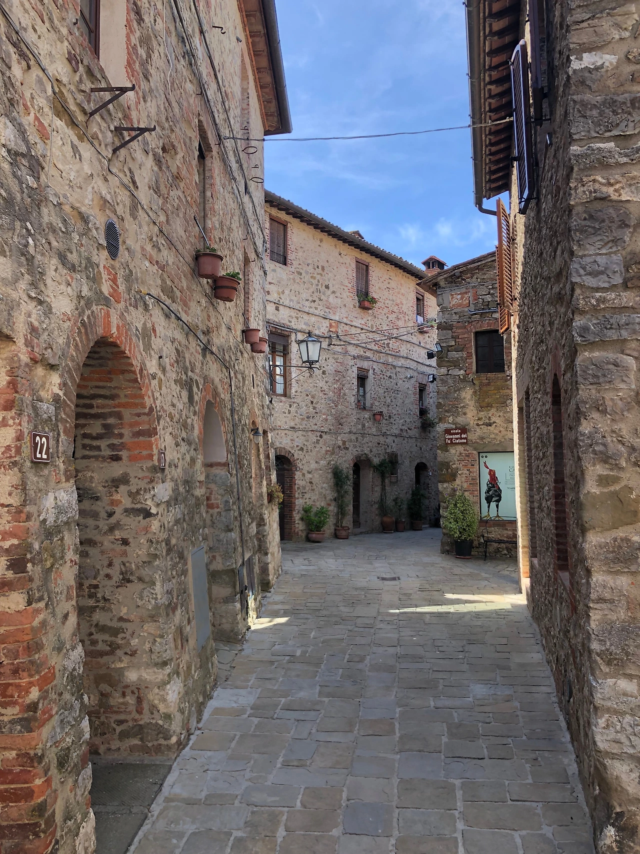 밤에 늦게 도착해서 체크인하느라 몰랐는데, 아침에 일어나 보니 옛날 성곽 안의 마을 한 복판에 있는 집이다. 여느 호텔과는 다른 색다른 느낌. 토스카나 마을의 첫인상이다. 일부러 틈을 내서 마을 어귀를 한 바퀴 돌아본다. 이른 시간이라 인적도 드물고 아침 빵과 커피를 먹을 만한 카페들도 문을 열지 않았지만 마을은 한적해서 좋다.