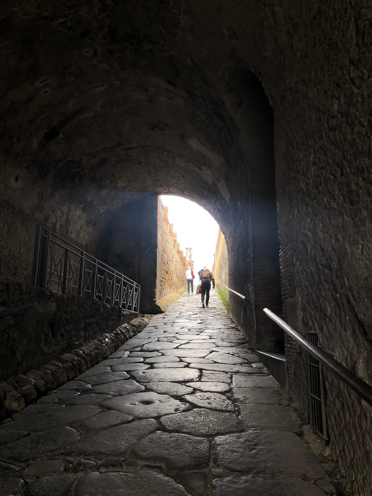 그리고 포르타 마리나로 올라가려면 아주 좁으면서도 당시의 마차가 다닐 수 있었던 폭 정도의 도로를 따라 올라가야 한다. 당시 폼페이는 번성하던 도시라 마차를 통한 이동도 많았는데, 이를 교통을 통제하기 위해 규격화된 마차만 통과할 수 있도록 도로를 만들었다고 한다. 그리고 반사석을 군데군데 끼워 넣어서 어두운 밤에도 도로임을 구분할 수 있도록 나름의 배려 장치도 만들었다고 한다.