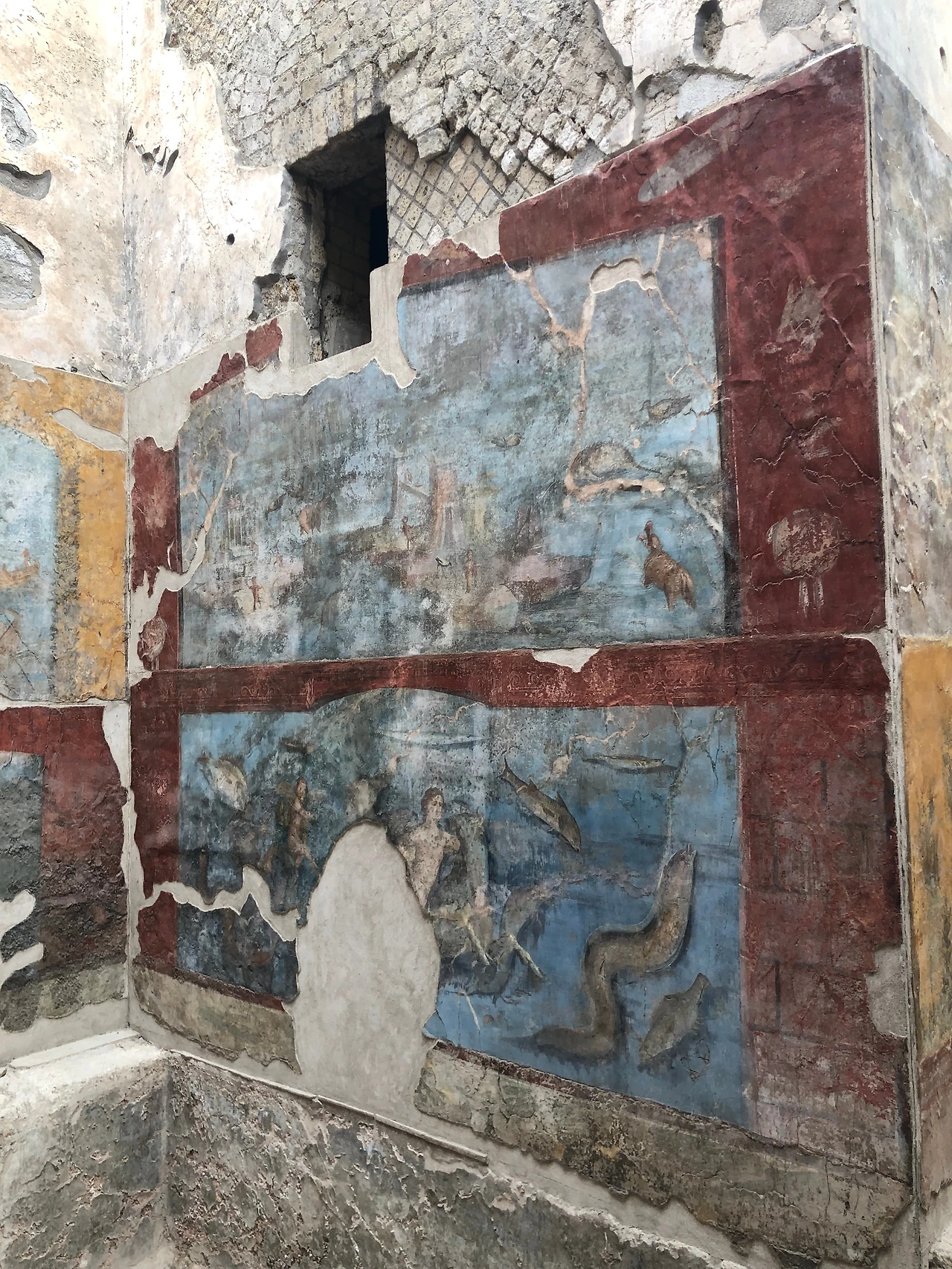 티켓을 검표하고 들어가면 처음으로 보이는 곳이 포르타 마리나. 문이라는 이름의 포르타와 바다라는 의미의 마리나, 즉 바다의 문이라고 불리는 곳. 지금은 육지지만 당시에는 바다에 면해 있어서 외항선이 여기까지 들어와서 정박했던 곳이다. 포르타 마리나는 여러 층으로 만들어져 배를 정박한 후 묶어둘 수 있는 돌들이 부두처럼 쓰이던 곳에 만들어져 있다. 그리고 외국의 선원들이 도착하면 오랜 항해로 인해 쌓인 피로를 풀 수 있도록 목욕탕이 있었다고 한다.