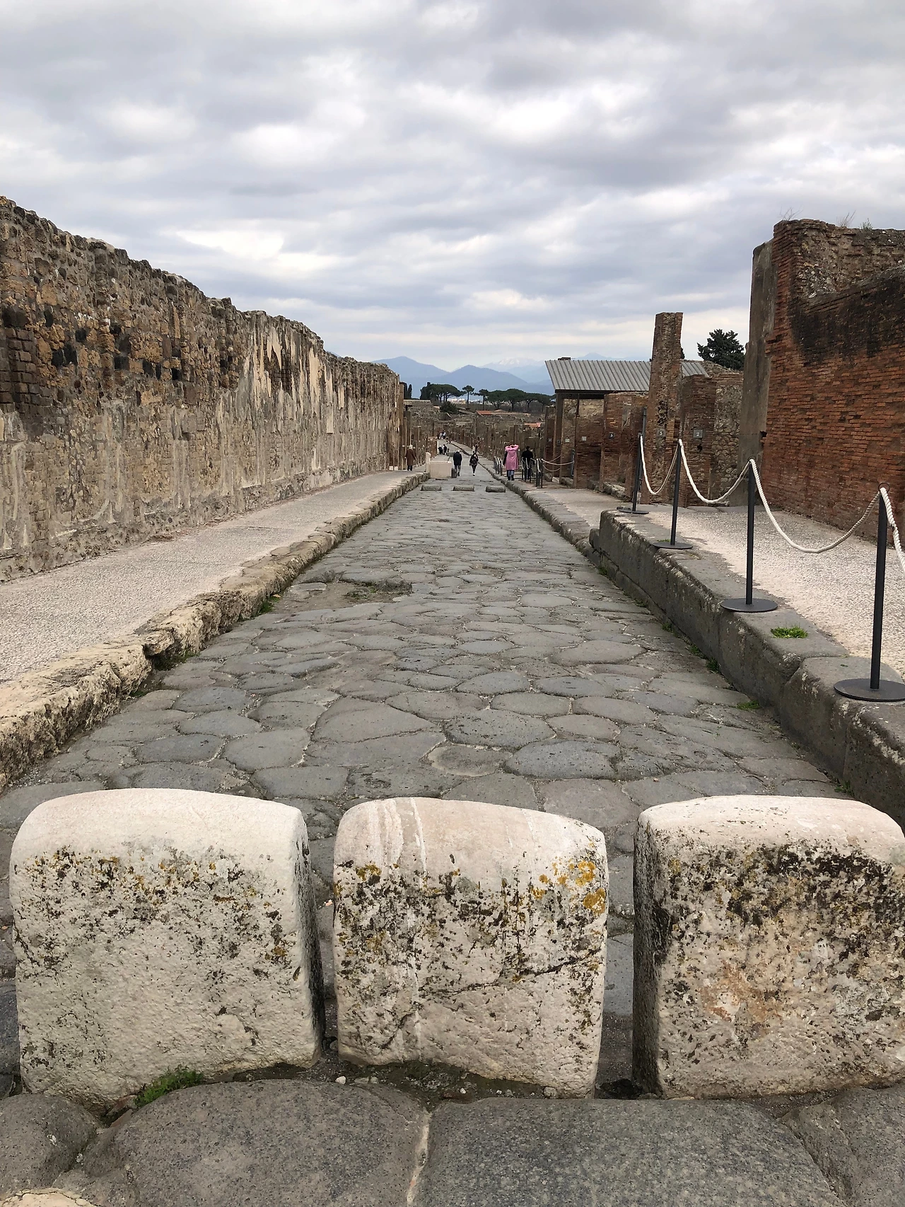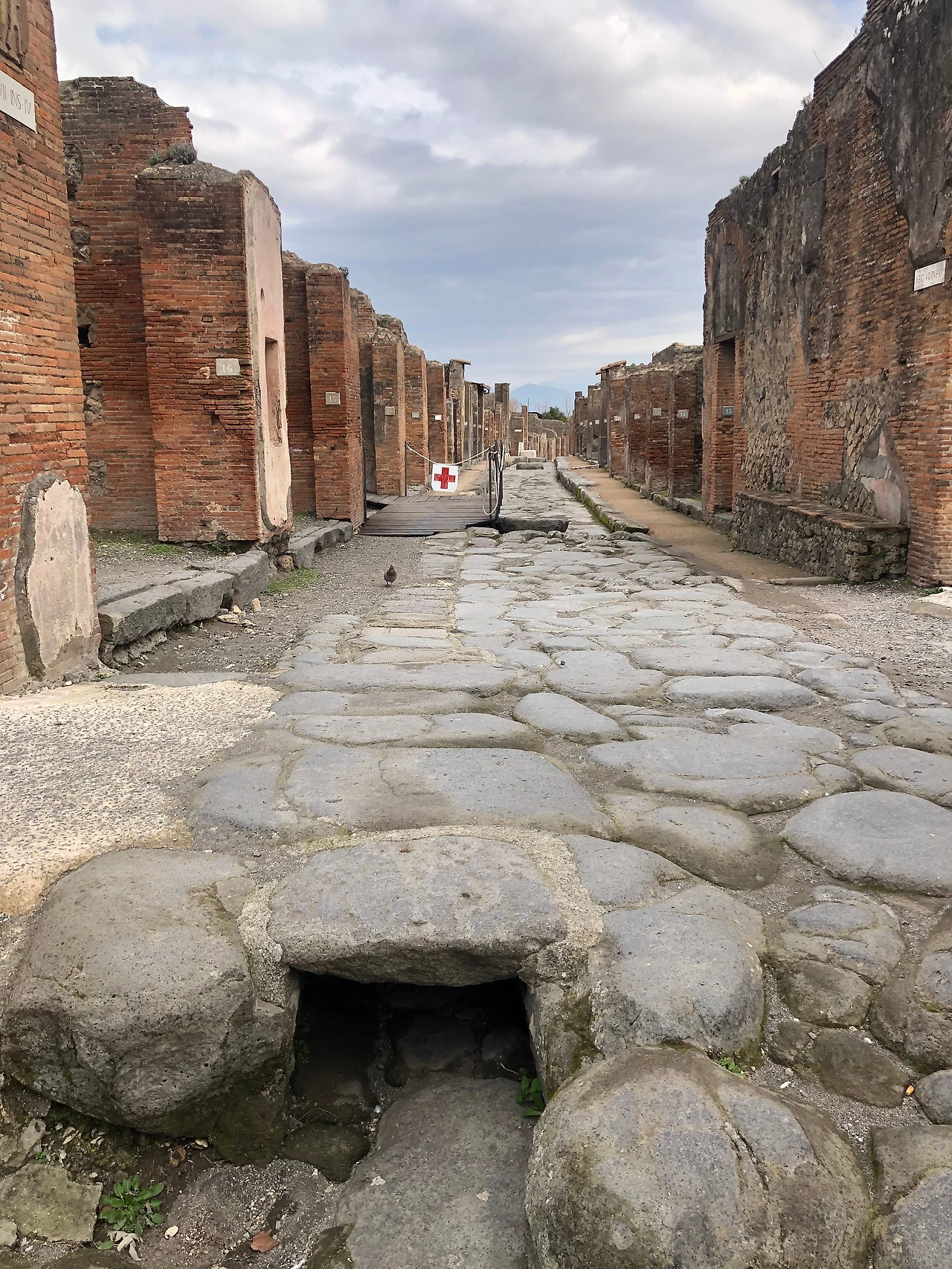 폼페이 도시의 메인 도로였다고 한다. 돌로 된 도로이면서 마차들이 다닐 수 있는데, 포로에 다 와서는 더 이상 마차가 못 들어가게 경계석을 만들어 두었다. 도로는 가운데서 양 가장자리로 경사가 있고, 포로 반대쪽으로 경사가 있어 물이나 말의 소변은 도로 가장자리 쪽으로, 포로에서 먼 쪽으로 흘러 내려가도록 설계되어 있다. 그리고 도시 중간중간에 우물이 있는데 우물에서 물이 넘치면 자연스럽게 말의 배설물이 씻겨 내려가도록 나름대로 과학적으로 설계되어 있었다고 한다. 도로 가장자리에는 요즘 같으면 주차공간, 말고삐를 묶어 둘 수 있도록 돌에 구멍을 내어두기도 하였다.