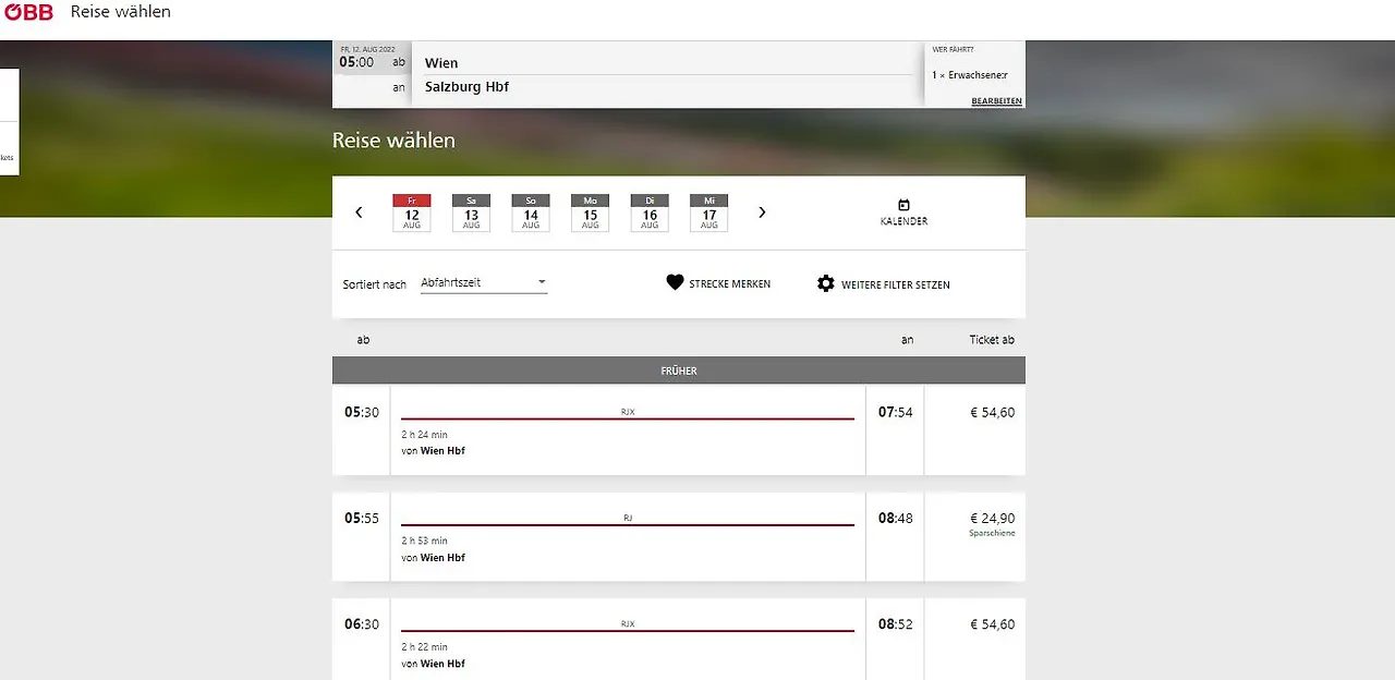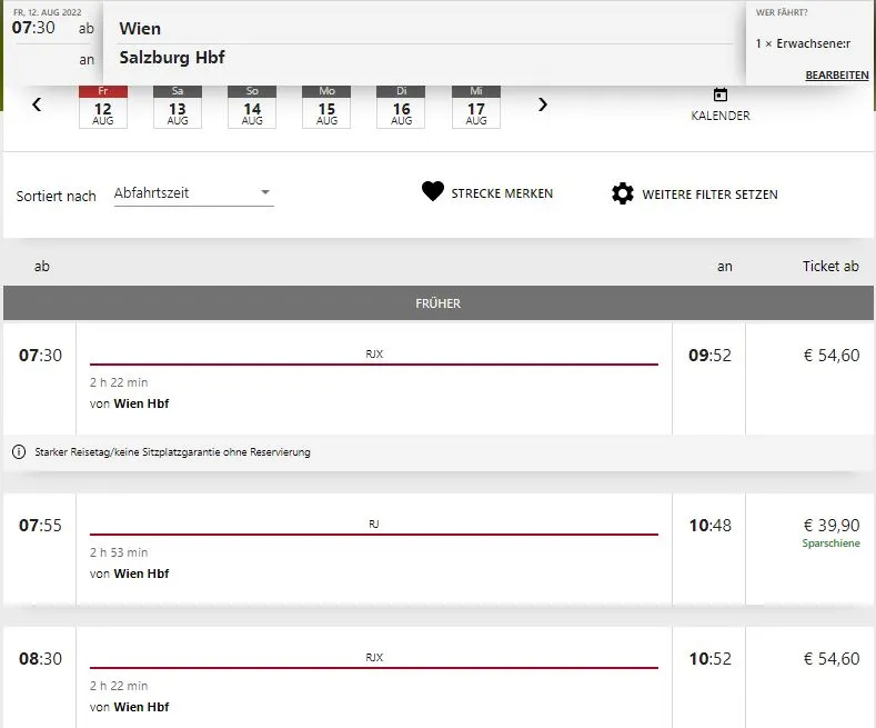 OEBB를 예약하다 보면 티켓 가격 밑에 Sparchiene라고 적혀 있는 티켓이 있다. 그 앞뒤에 시간만 다른 티켓과 비교하면 가격이 저렴하다. 한 번 두 번 갈아타서 갈아타지 않는 기차보다 저렴한 경우도 있지만, 같은 직행인데도 가격이 저렴한 티켓이 있다. 구글로 번역해 보면 Saving rail이다. 결국 아낄 수 있는 기차란 의미다. 이 티켓을 사면 적어도 10~20유로 정도는 저렴하게 OEBB기차를 이용할 수 있다.