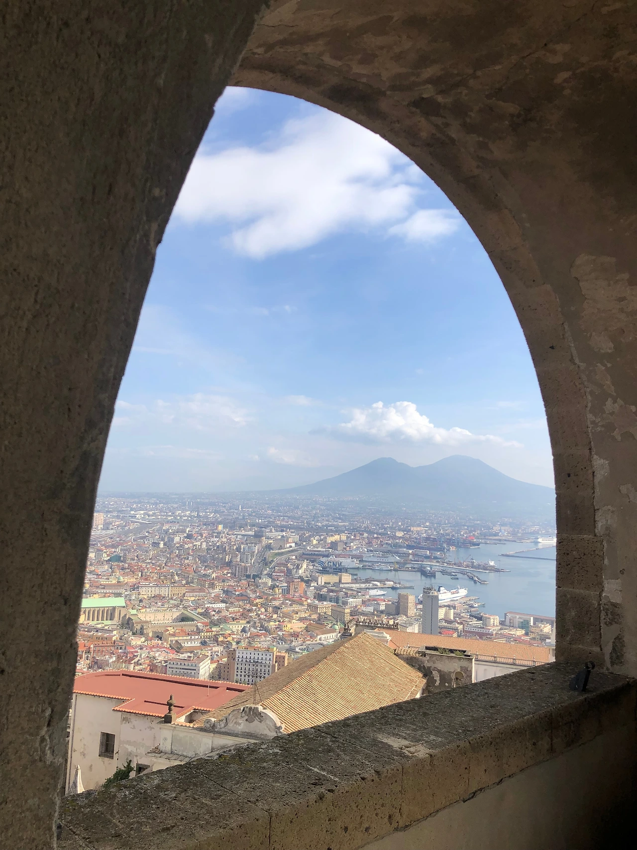 엘모성의 압권은 '어린 왕자'에서 코끼리를 삼킨 보아뱀처럼 생긴 베수비오 화산을 배경으로 지중해와 맞닿아 있는 나폴리항이다. 세계 3대 미항이라고들 한다. 과연 3대 미항인지는 각자의 판단에 맡겨야 할 것 같다. 한쪽 뷰는 폼페이를 삼킨 베수비오 화산, 그 옆 뷰는 쏘렌토와 카프리섬, 또 한쪽은 또 다른 나폴리 뷰. 그 뷰를 보고만 있어도 나폴리에 올 만한 가치는 충분하다는 생각이 든다. 이젠 김민재를 응원하러 오고 싶을지도 모른다.