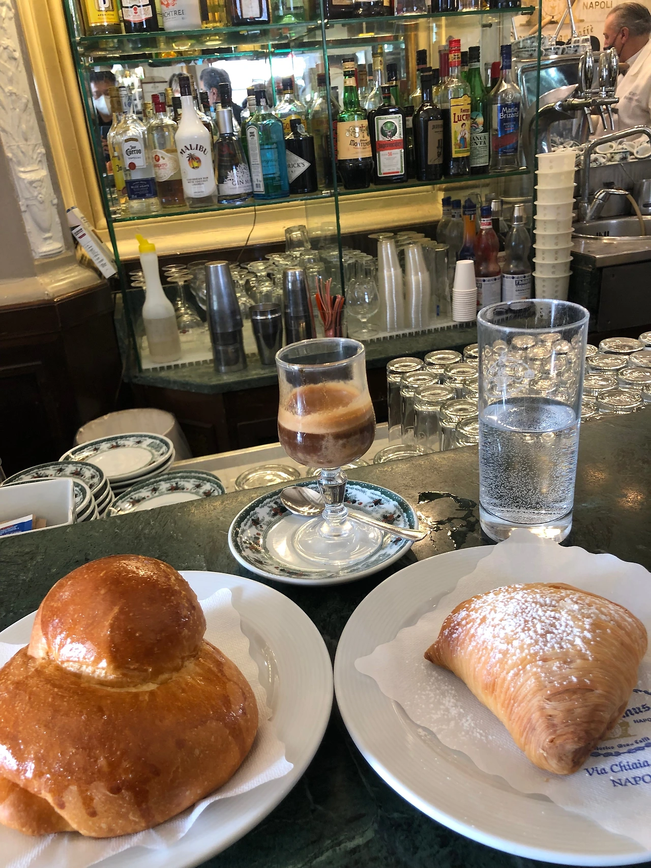 크림과 산딸기가 얹힌 스폴리아텔라가 눈을 유혹했으나, 보통 스폴리아텔라와 럼주가 들어간 바바 각각 하나씩과 커피를 스탠딩으로 즐기면서 '과식좌 아시안'의 면모를 과시했다. 옆에 있는 이탈리안 부부(연인이었는지 모른다)로 부터 대식가라는 타이틀 아닌 타이틀을 얻으며 훗날 기억할 수 있는 추억거리를 만든다.
