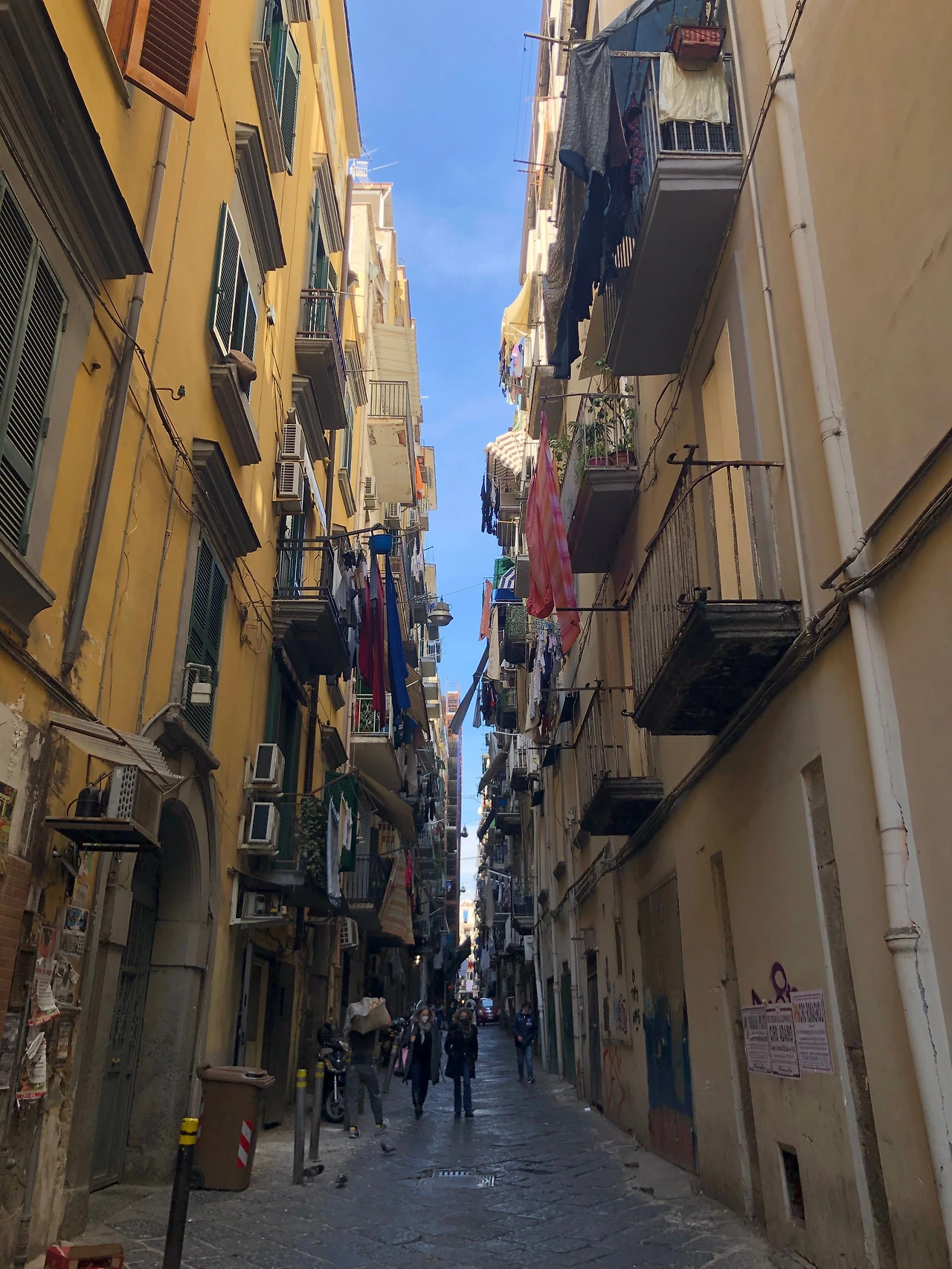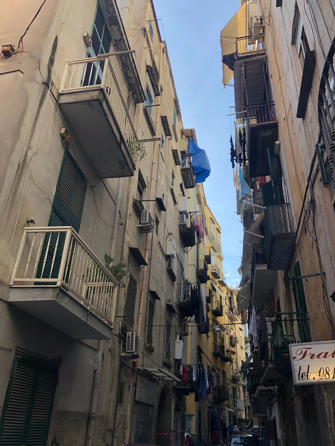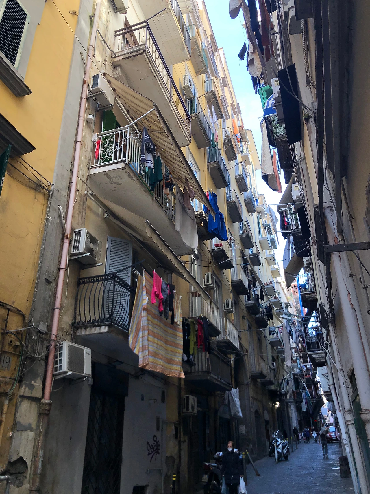 양쪽으로 여는 전형적인 유럽의 나무문, 베란다 난간, 여기저기 걸려있는 빨래와 이불. 정겹기만 하다. 나폴리가 무섭고 지저분한 도시라는 인상과는 거리가 멀다. 그런 길을 걷는 것. 그 또한 여행의 즐거움 중 하나다.