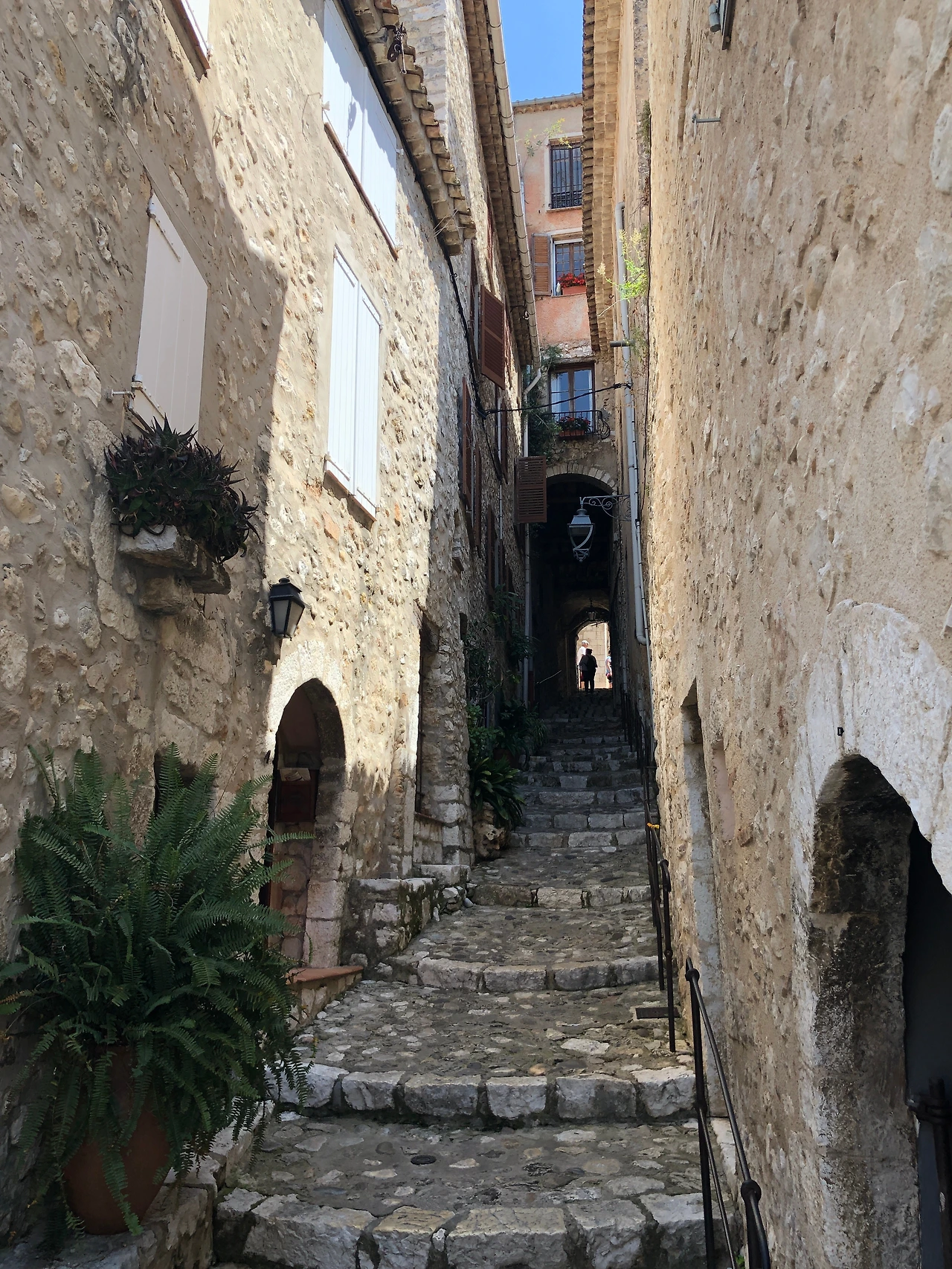 니스에서 차로 30분 남짓 거리에 있는데, 샤갈이 생을 마감하고 잠들어 있는 것 외에는 여느 남프랑스 중세도시와 비슷하다. 요새도시다 보니 경사, 계단, 좁은 골목. 그들이 주는 아늑함이 특색인 곳이다.