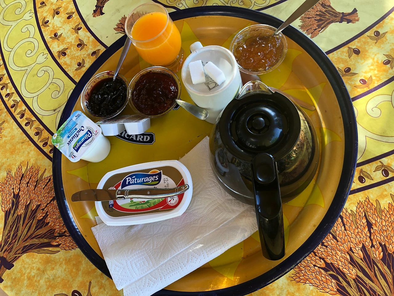 시골 농장에 야외 테이블에서 유럽식(?) 아침을 먹는 낭만은 여행의 즐거움을 더 증폭시키는 효과가 있다. 그러기에 발랑솔 이야기에 에피소드 중 하나로 이 아침을 기록하고 있다.