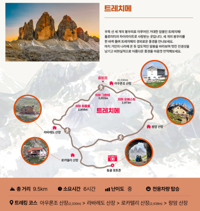 3박 4일 일정으로 가다 보니 트레치메에 너무 많은 시간을 할애할 수 없었던 이유이다.