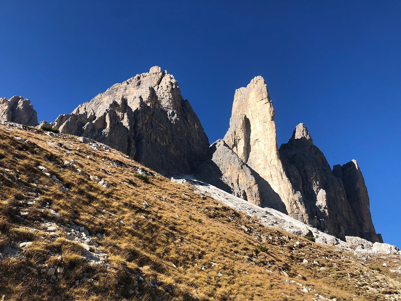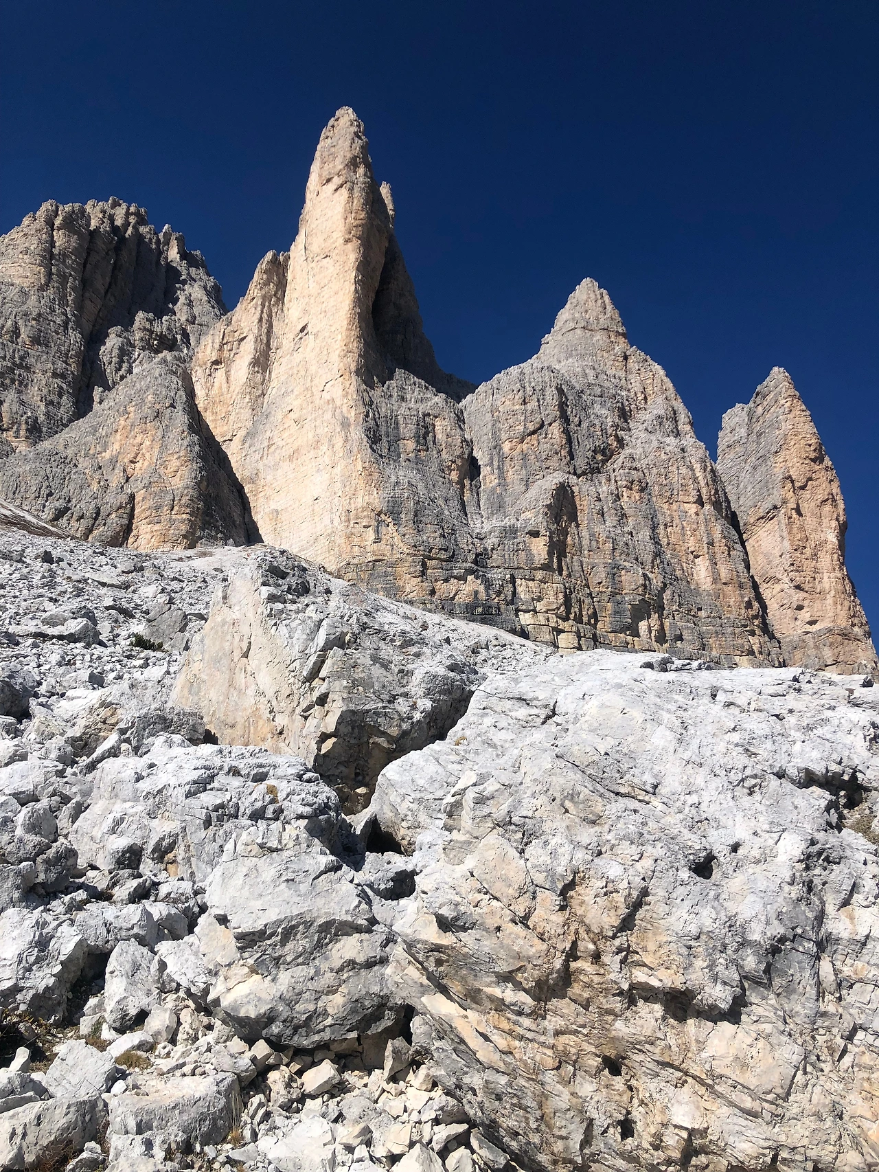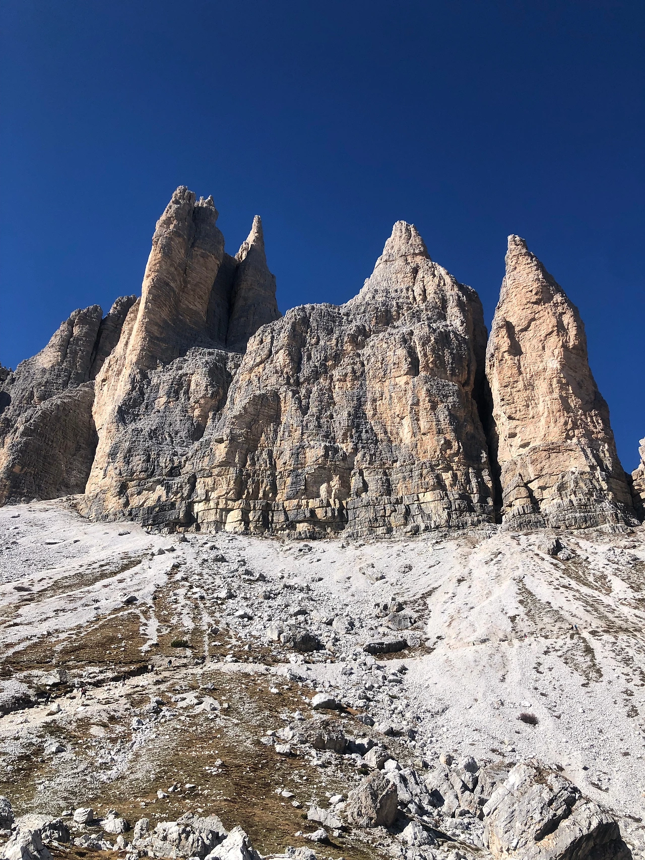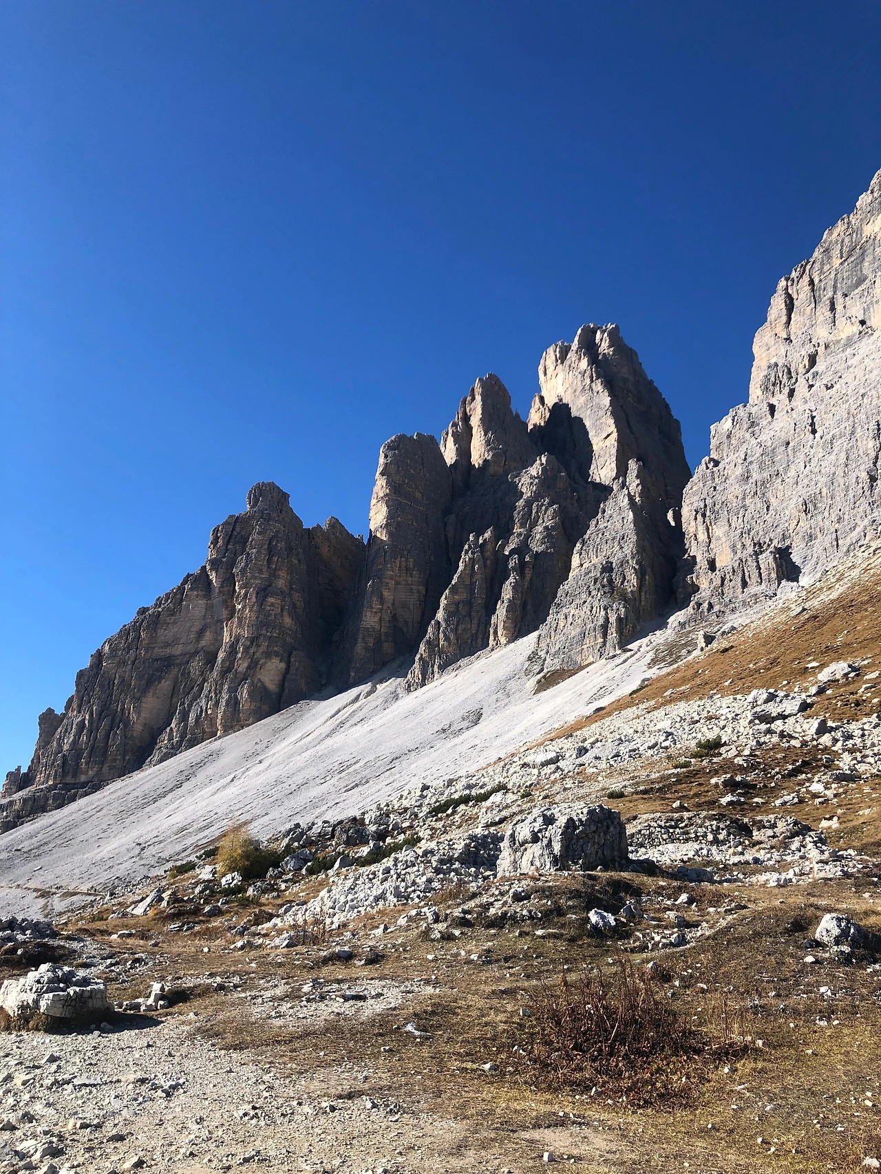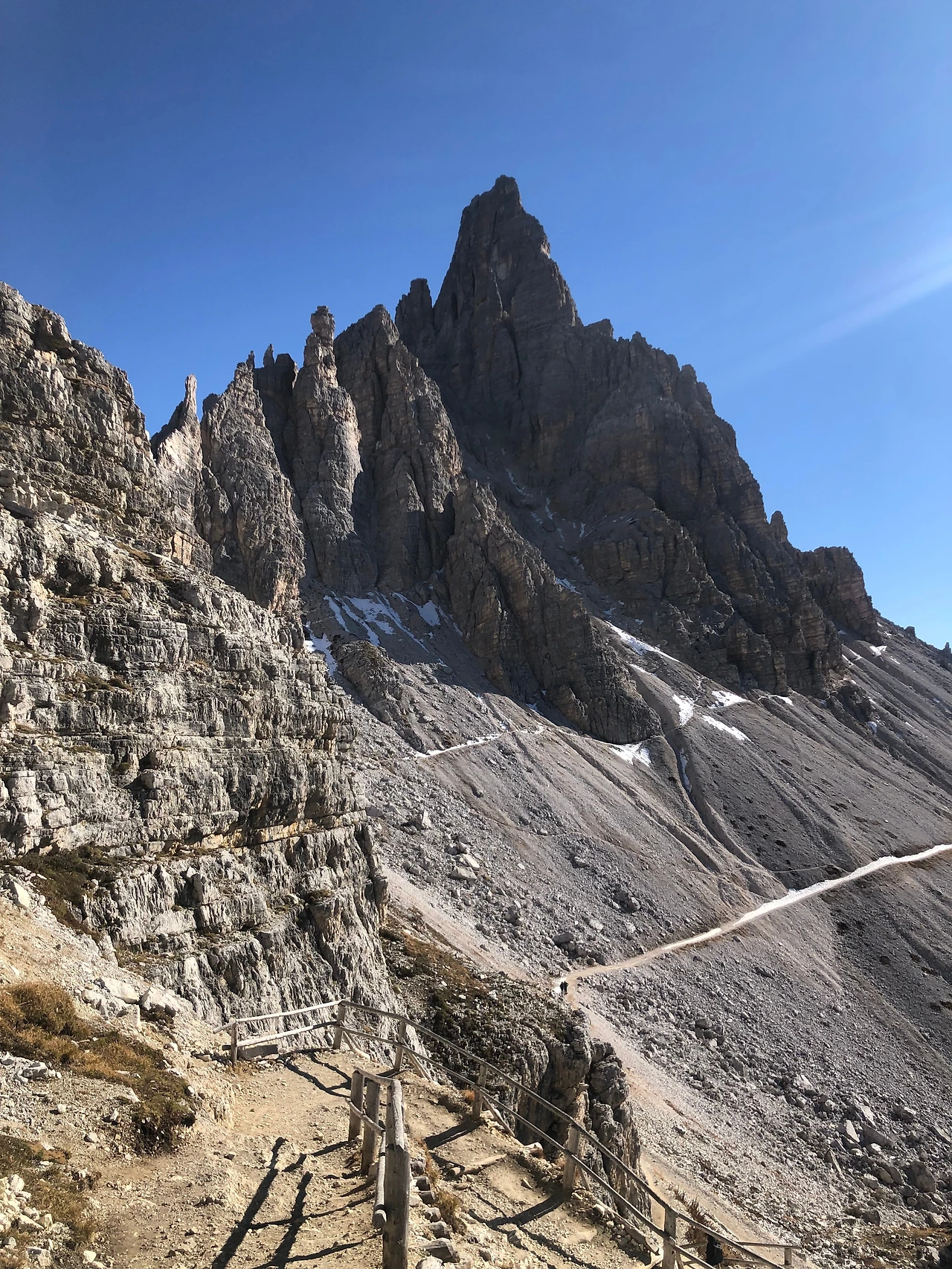 로카델리 산장에서 본 풍경. 트레치메를 보는 방향 기준으로 왼쪽 돌산이다. 뾰족 뾰족. 험준해 보인다. 그저 보는 것만으로도 아찔하다.