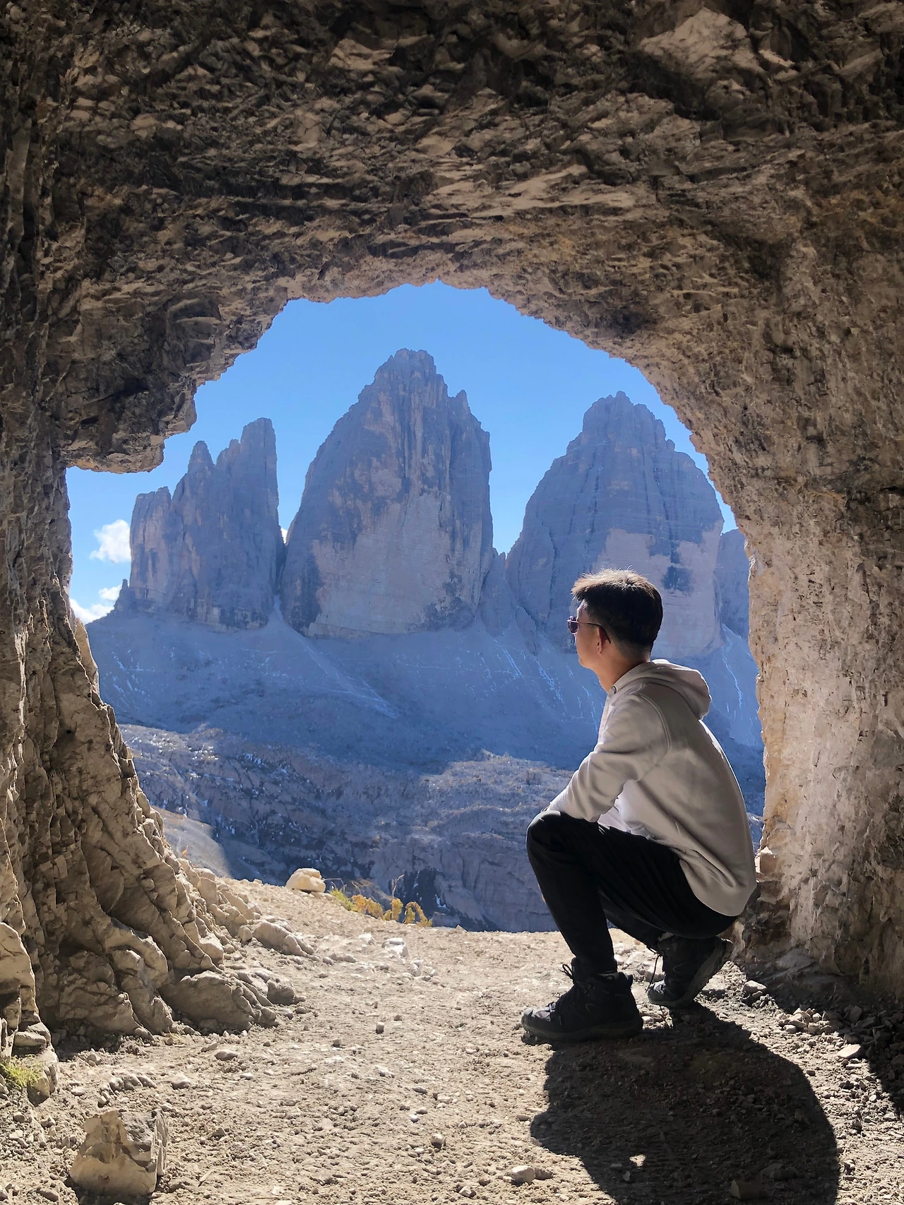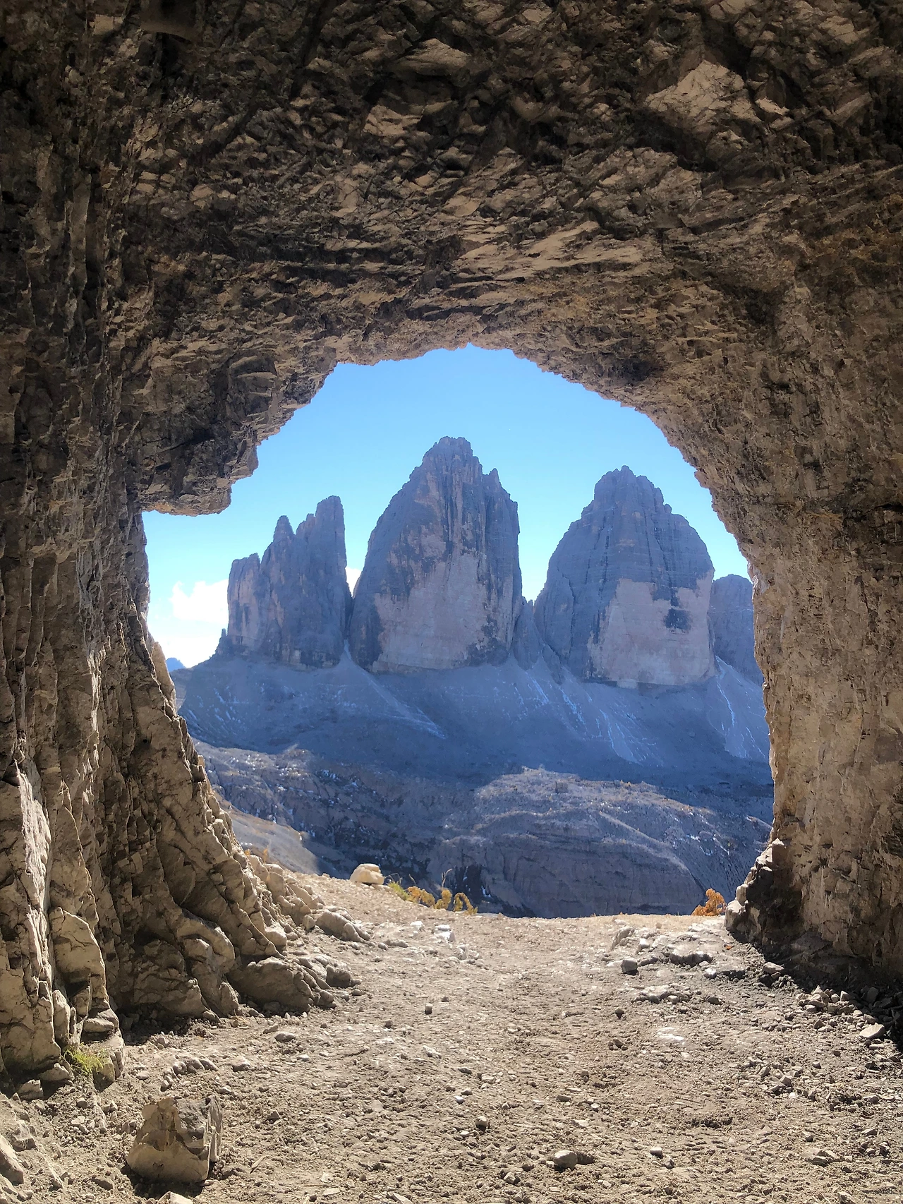 트레치메 트레킹은 아우론조 산장에서 시작해서 라바레도 산장, 로카델리 산장. 그 뒤에 있는 동굴 포토존.