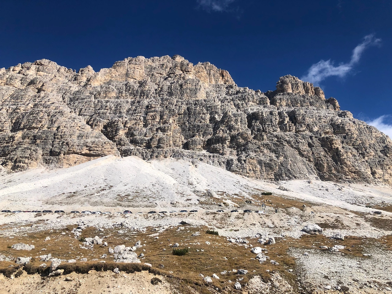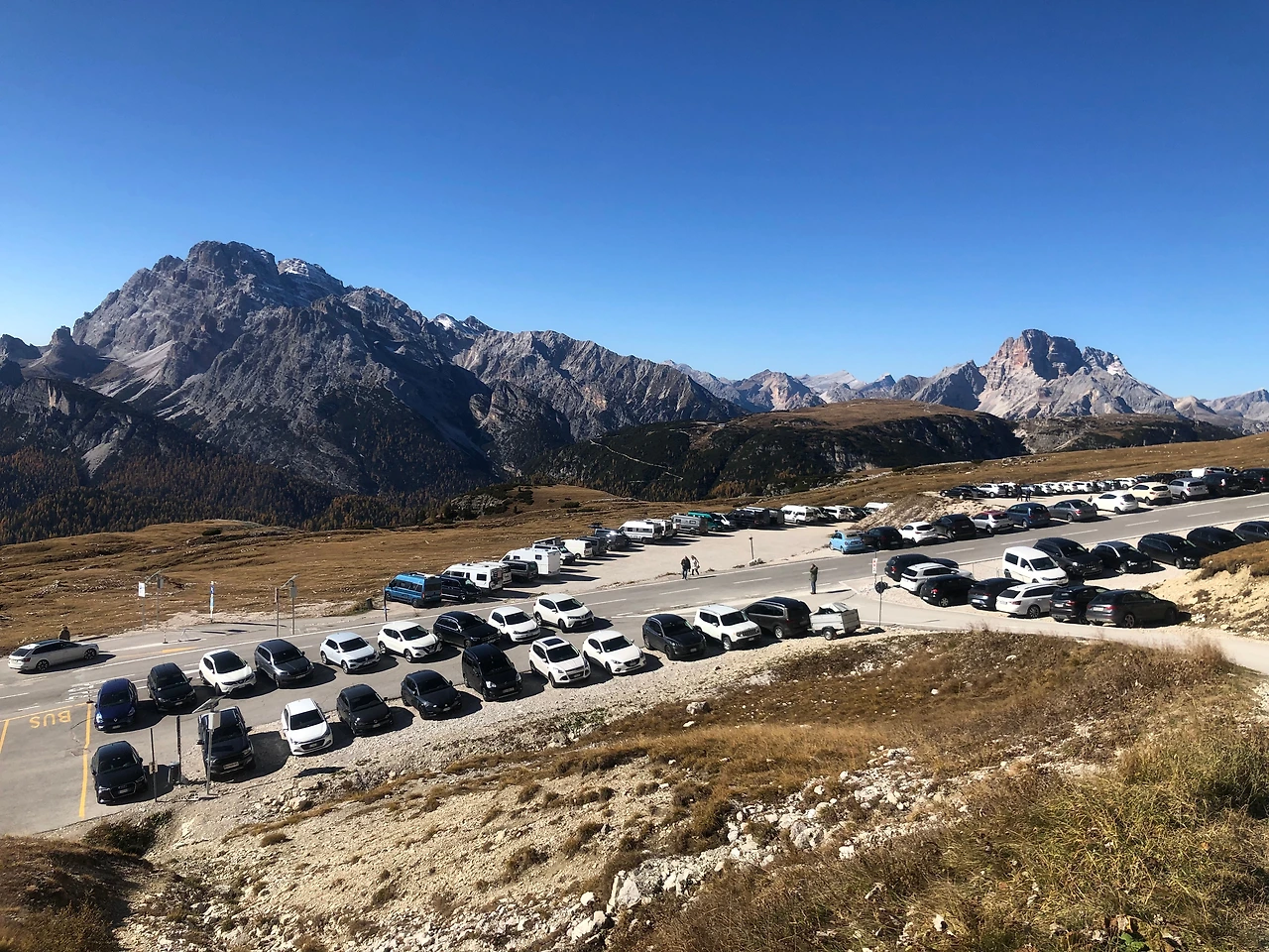여름 성수기에는 도비아코 호수에 차를 주차하고 셔틀버스로 올라가야 한다는데, 이때는 코로나 시국이기도 하고 겨울 스키시즌 이전에 관광객들이 드문드문 오던 시기라 트레치메 주차장까지 올라가서 차를 주차하고는 트레킹을 시작한다.