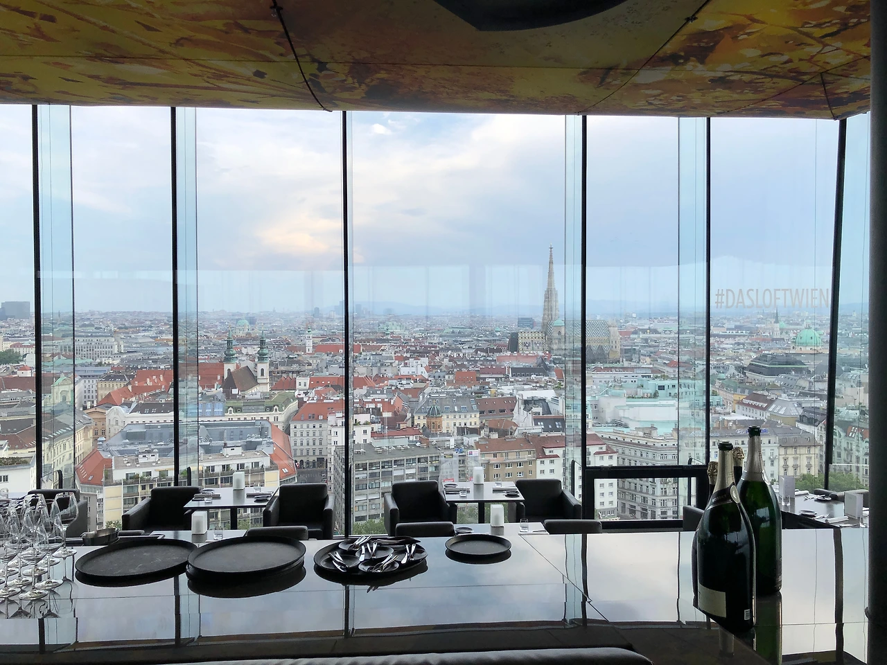 Das Loft를 홈페이지에서 예약을 할 때 레스토랑과 바를 구분해서 예약을 해야 한다. 일단 식당과 바는 구역이 나뉘어져 있다. 식당은 네 면이 전면 유리로 된 창가에 테이블에서 서빙을 한다. 창가에서 아무런 시야에 장애물없이 우아하게 식사를 하면서 비엔나 시내 전경을 조망할 수 있다.