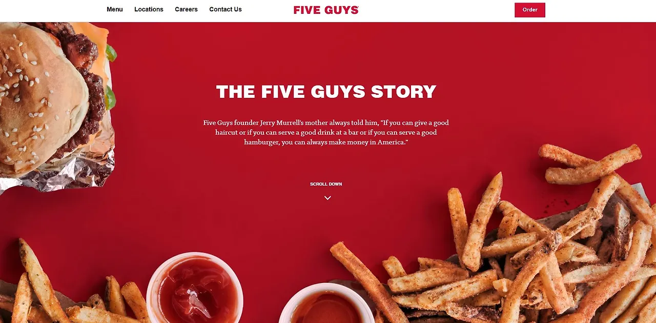 Five Guys에 얽힌 재미난 얘기가 홈페이지에 있어 소개한다. 파이브 가이즈 창업자 Jerry Murrell의 엄마가 "머리를 예쁘게 자르거나, 바에서 맛난 음료를 팔거나, 맛난 햄버거를 팔 수 있으면, 넌 미국에서 항상 돈을 잘 벌 수 있을 거다"라고 했다고 한다. 그만큼 햄버거는 팍스 아메리카나의 상징인 것 같다.