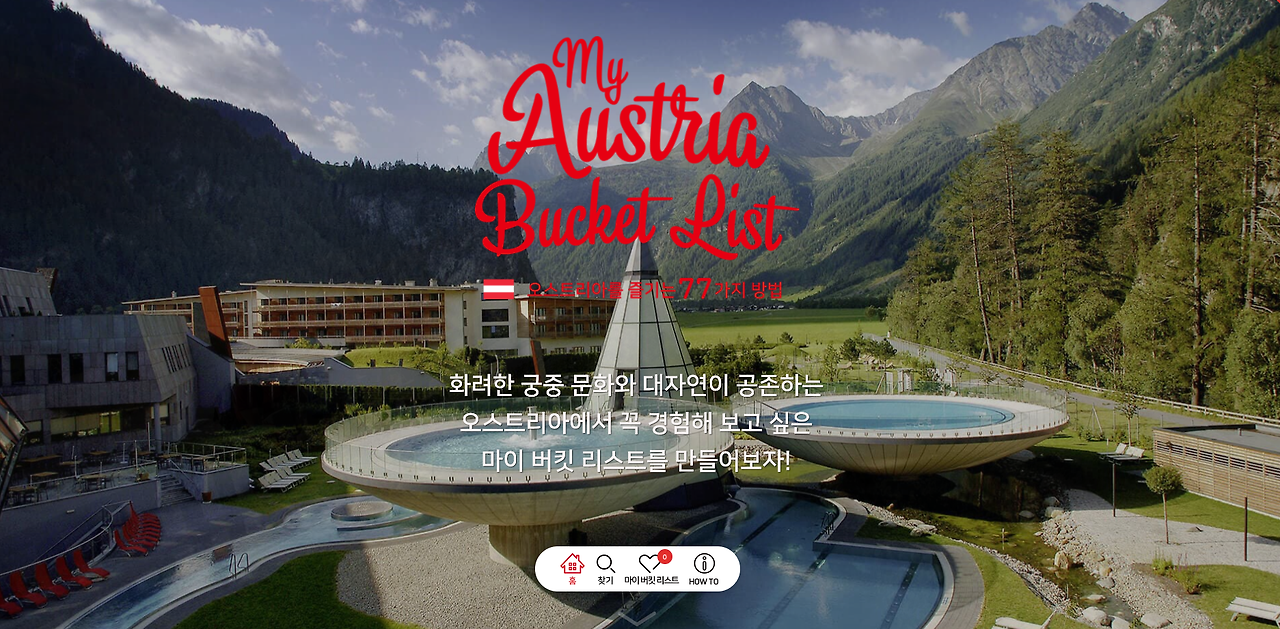 오늘은 오스트리아 관광청에서 운영하는 사이트 중에서 'My Austria Bucket List', 번역하면 오스트리아를 즐기는 77가지 방법을 소개하려고 한다.