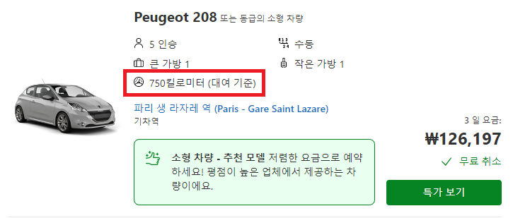 파리에서 시작해 코끼리 바위로 유명한 에트르타 절벽, 옹플뢰르, 몽셍미셸, 오베르 쉬아즈, 지베르니를 간 이야기 보따리는 나중에 푸는 걸로 하고, 오늘은 뜬금없지만 렌터카를 빌릴 때 '운행거리 제한'에 대해 얘기를 해 보고자 한다. 특히 프랑스에서 렌터카를 빌릴 때는 운행거리 제한 여부를 꼭 따져볼 필요가 있다. Rentalcars.com이나 그 외 예약 대행 사이트에서 렌터카를 빌릴 때 보통은 거리 무제한이다. 그런데 파리와 같은 몇몇 나라에서는 거리 제한이 있는 경우가 많다. 렌트당 총 500킬로미터, 750킬로미터, 1,000킬로미터 등 렌트가 회사마다 다르다. 이 숨어 있는 운행거리 제한이 보이지 않는 비용임을 알면 굳이 안 지불하지 않아도 되는 돈을 아낄 수 있다.