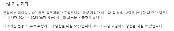 렌트 기간 동안 거리제한 여부는 반드시 확인하자
