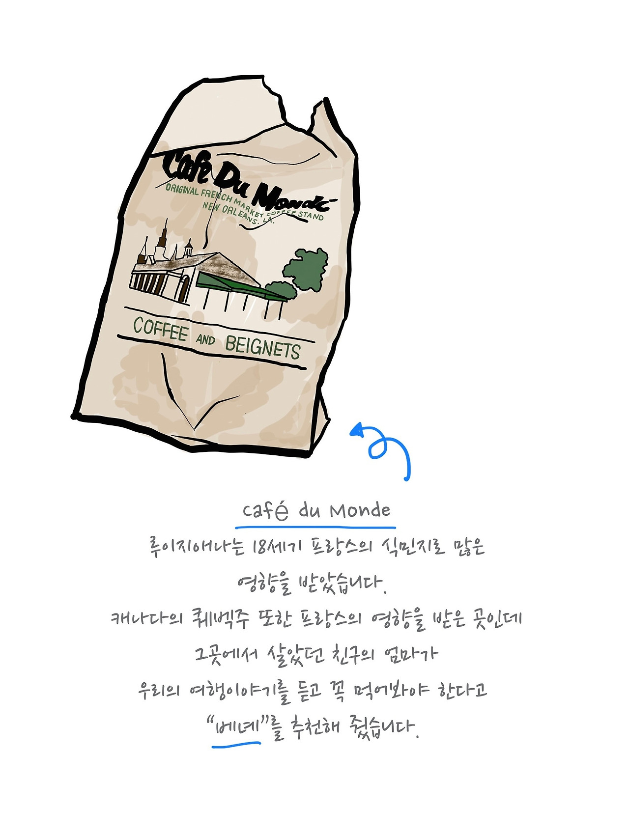 무료 트램을 타고 프랑스식 도넛 베녜를 먹으러 갔어요. 줄이 생각보다 길었는데 날씨까지 서울처럼 덥고 습해서 힘들었어요. 하지만 베녜를 먹는 순간 우리 가족은 맛에 감동했어요. 저에게는 음악보다 음식이 먼저인 곳, 루이지애나가 됐습니다.