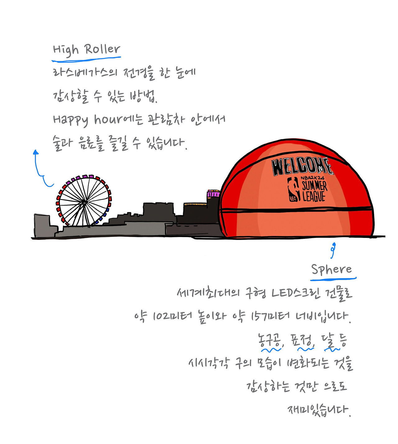 기록적인 더위가 힘들게 했지만, 우리는 계획한 관광을 많이 했어요. 멋진 공연도 보고 세계의 모든 코카콜라(무려 24가지 다른 맛!!, 오이맛도 있었다)도 마셔보고, 대관람차 하이롤러의 막차시간을 놓치지 않으려고 뛰어가서 탔어요.