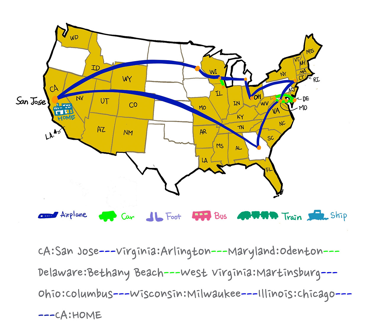 이 여행에서 우리는 사상 최대로 많이 비행기를 탈 것이라고 했어요. 아빠는 총 8번의 비행을 하면서 이동하는 계획을 세우셨어요. 아마 마음에 드는 저렴한 항공권이 잘 구해진 것 같아요. 처음 내린 공항은 버지니아 주에 있는 로날드 레이건 워싱턴 공항이었어요. 작지만 처음 알게 된 공항을 이용하는 것이 아빠를 즐겁게 했어요. 아빠는 공항을 정말 좋아하거든요. 공항의 업무를 잘 알고, 비행기에 관련해서도 많은 것을 알고 있어요. 어릴 적부터 하늘에 날아다니는 비행기를 보면서 저 비행기를 타면 어디에 갈 수 있는지 물어보면 아빠는 그 비행기의 기종, 항공사명, 목적지를 정확하게 알려주셨어요. 그래서 종종 아빠가 비행기나 공항에 몰두하고 있을 때면 엄마는 아빠께 지금이라도 늦지 않았으니 파일럿이 되어보라고 이야기해요. 그런데 아빠는 지금이 행복해서 그럴 필요는 없다고 해요.