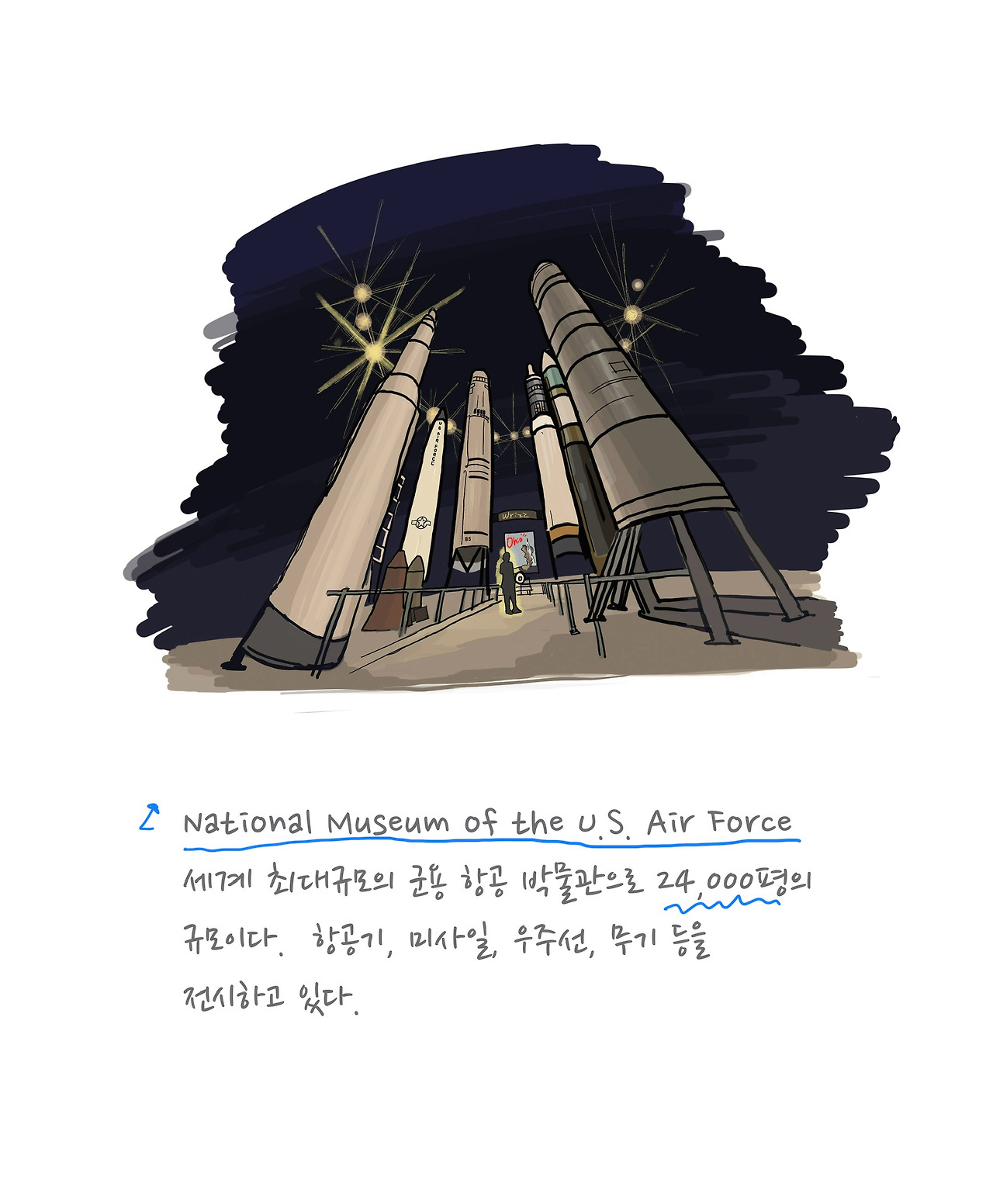 그런데 빵과 미술관 심지어 패션 이라니! 오하이오주의 콜럼버스는 나보다 엄마가 더 즐기며 여행을 한 곳이 됐어요. 엄마는 미술관을 나오면서 인생을 되돌린다면 오하이오주에서 예술활동을 하면서 살고 싶다고 했어요. 그렇다면 예술활동을 하는 엄마 옆에서 아빠는 무엇을 하면 좋을까요? 엄마와 아빠는 운명이었나 봐요. 미술관 관람 후, 아빠의 주도하에 항공우주 박물관으로 향했거든요. 여행하면서 여러 곳의 항공우주 박물관을 다녀봤지만 갈 때마다 새로워요. 매번 유일하게 엄마의 체력이 약해지는 곳이기도 하고요. 늘 피곤함에 틈만 나면 주무시는 아빠가 뿅! 하고 눈이 동그랗게 변하는 곳이지요.