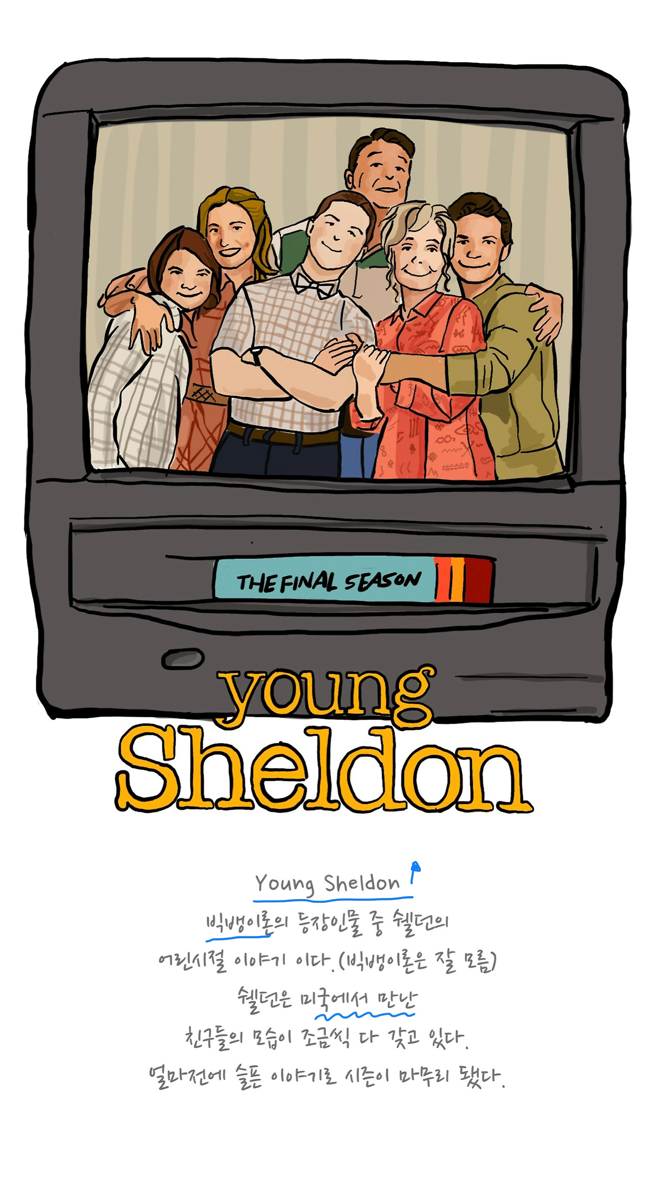텍사스 하면 바비큐, 그리고 내가 좋아하는 드라마 영 쉘던의 고향입니다! 공항에 내려서부터 주변의 사람을 살펴보니 쉘던의 가족들과 비슷한 느낌의 사람들이 많았어요. 쉘던의 형 같다고 깔깔 웃고, 쉘던의 할머니 같다고 웃고, 쉘던 할머니의 남자친구가 있다고 신기해하고……. 엄마와 저는 사람들을 드라마 속의 인물들과 매칭하느라 바빴어요. 친구들이 우리 집에 놀러 와서 사진 속의 한국친구들을 보면 현재 미국학교에 같이 다니고 있는 한국인들로 착각하는 것처럼, 같은 인종과 같은 지역 출신이면 비슷하게 보이는 것이 있는 것 같아요.