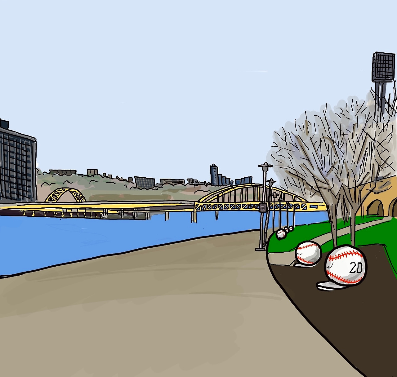 펜실베니아주에 있는 피츠버그에 들어서면서 지도박사인 우리 아빠가 자꾸만 길을 잘못 들고, 주차 때문에 애를 먹었어요. 그런 아빠를 보면서 오랜만에 서울과 비슷한 느낌을 받을 수 있었어요. 서울처럼 복잡하게 이어진 도로, 강을 따라 걸을 수 있는 산책로와 그 위를 잇고 있는 다리들……아마 서울에서 한강 옆에 살면서 매일 놀이터에서 놀았기 때문에 피츠버그의 풍경들이 마치 서울에 있는 기분을 들게 하는 것 같아요.