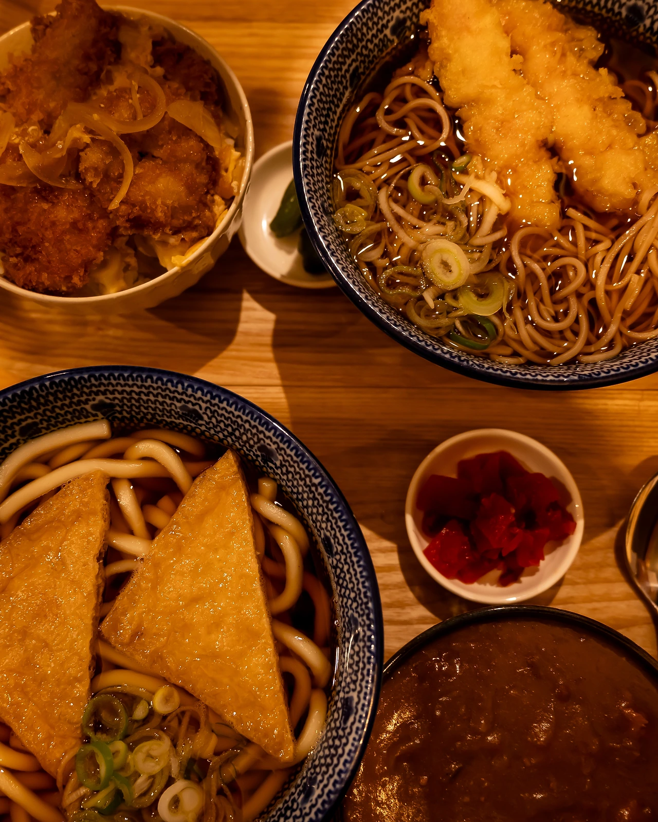 난 유부 우동과 카레 덮밥, 친구는 가츠동과 냉모밀.