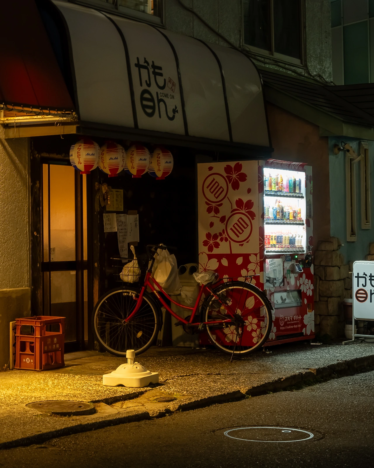 가게 조명과 앞에 세워진 자전거, 자판기의 모습이 너무 이뻐보여서 얼른 카메라를 다시 켜서 찍은 사진들이다. 나만 알고있는 사진스팟을 발견한 기분이라 너무 마음에 들었다.