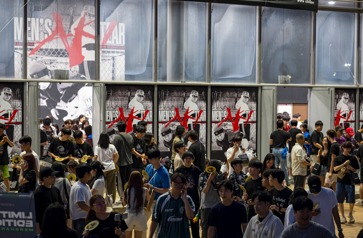 그때 맨스티어 콘서트 현장에서 가장 눈에 띄는 것이 있었으니, 그것은 바로 익스트림 X 맨스티어의 한정판 콜라보레이션 티셔츠!