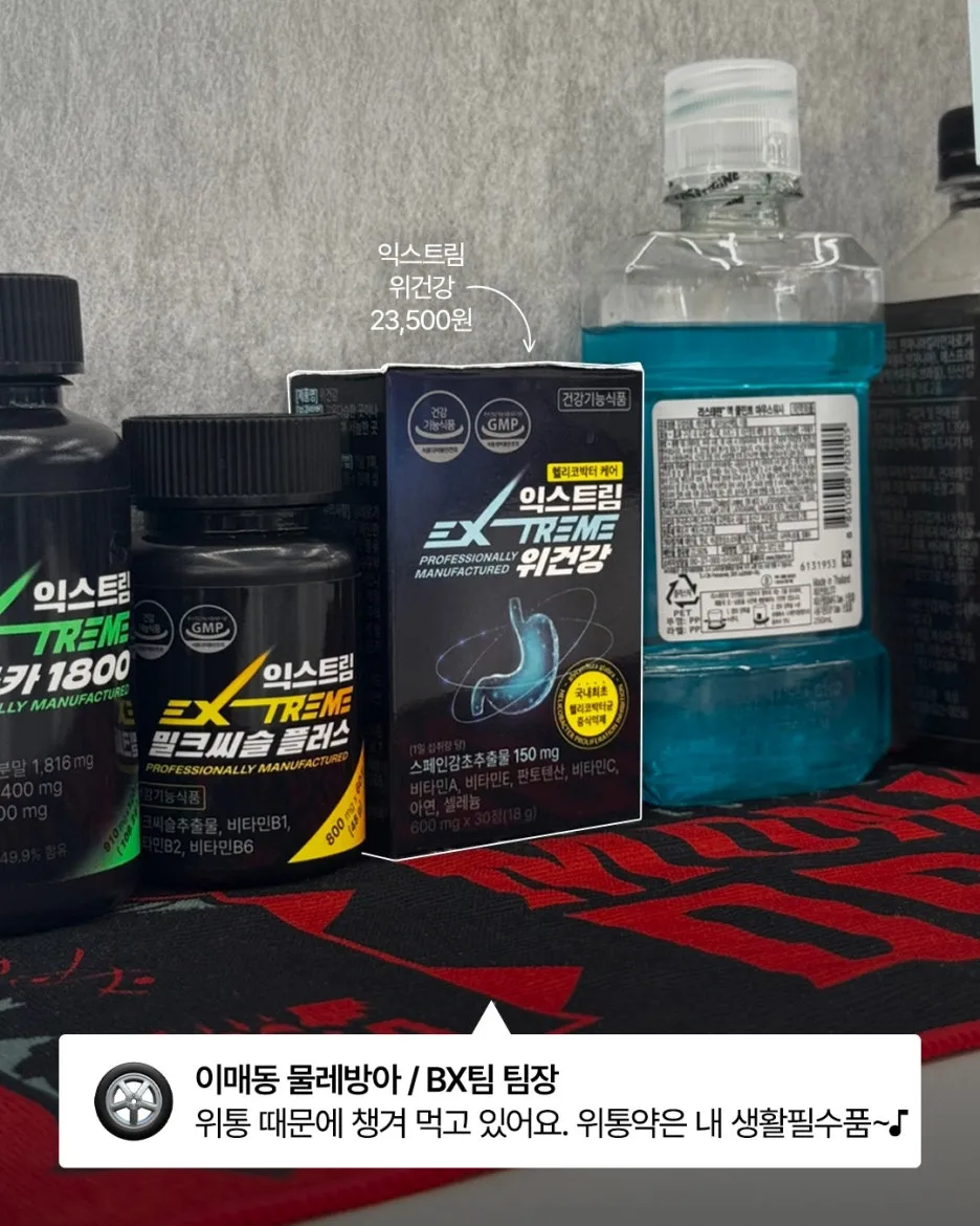 회사 스트레스로 위통이 심해져서 익스트림 위건강을 약처럼 열심히 챙겨 먹고 있어요.