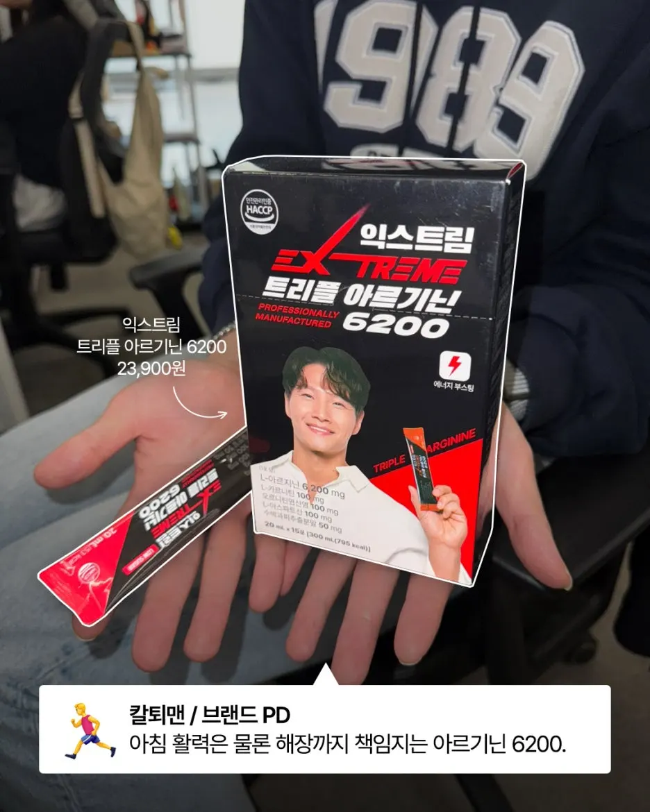 아침 출근하자마자 제일 먼저 챙겨 먹는 건 익스트림 아르기닌 6200이에요.