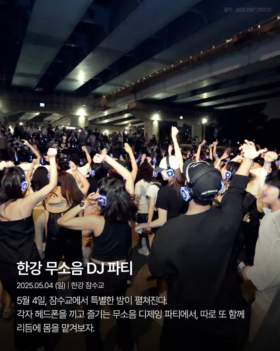 5월 4일, 잠수교 위에서 무소음 DJ 파티가 펼쳐진다. 참가자들은 각자의 헤드폰을 끼고, 헤드폰에서는 디제이가 틀어주는 음악이 흘러나온다.