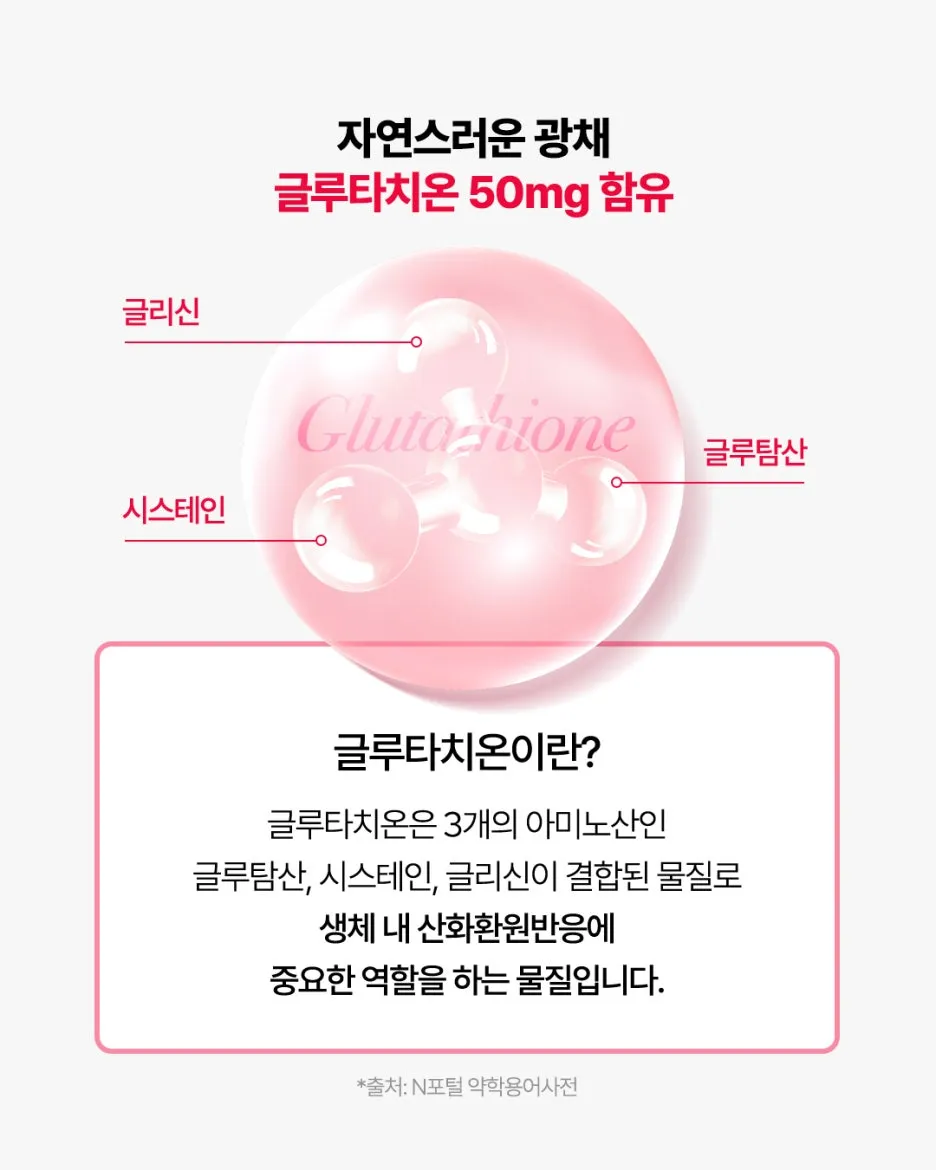 글루타치온은 글루탐산, 시스테인, 글리신이라는 세 가지 아미노산이 결합해 만들어진 물질로, 체내 산화환원 반응에 핵심적인 역할을 한다.
