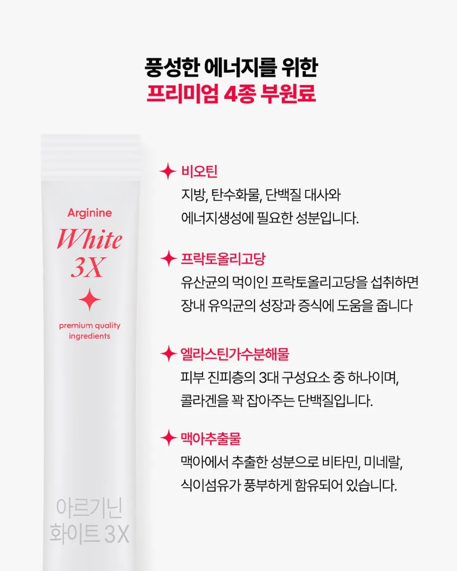 여자를 위한 익스트림 아르기닌 화이트 3X는 불필요한 첨가물을 최소화한 제품이다.
