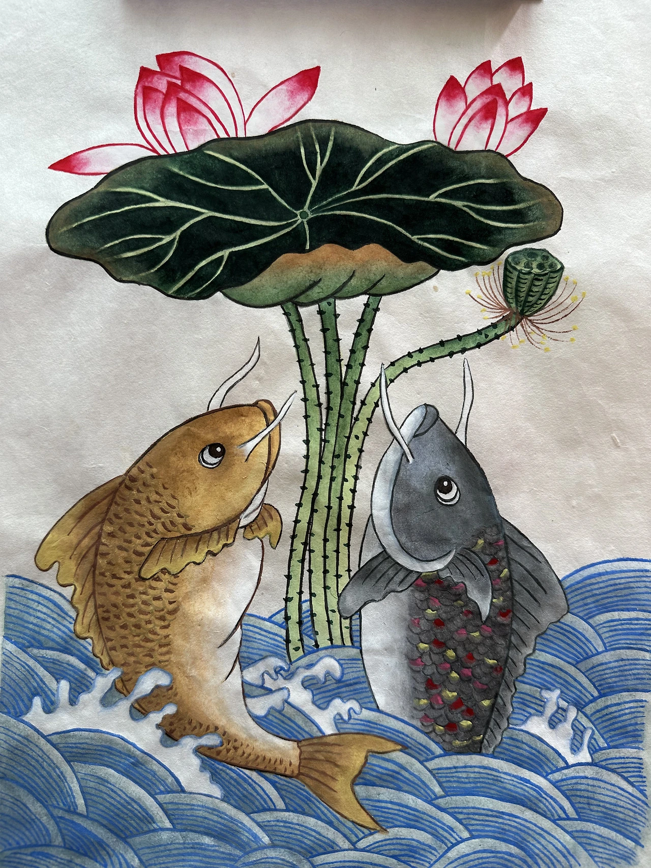'어해도' 특히 두 마리의 잉어가 있는 어해도는 두 번의 합격 그리고 연밥은 결실을 뜻합니다.